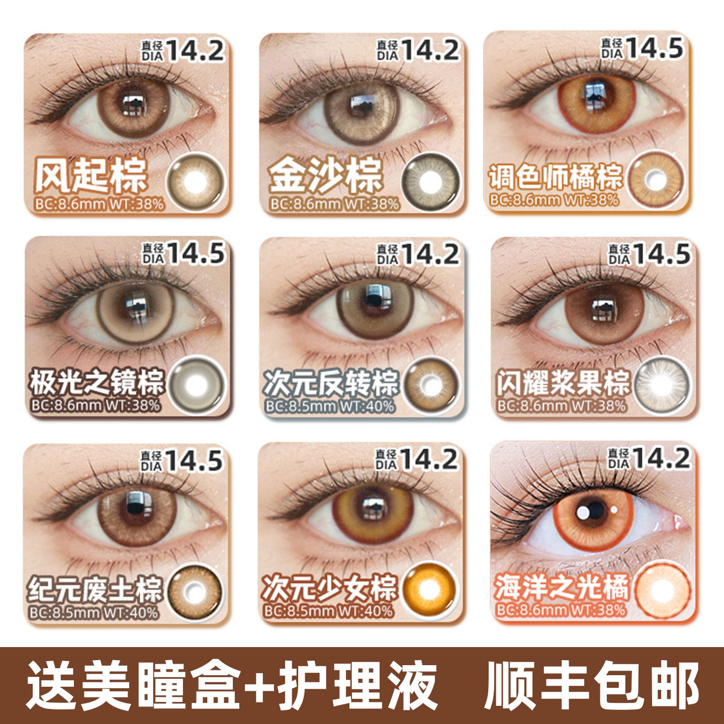 📚 雅诺cos美瞳棕色合集黄橘棕半年抛显色非离子cosplay官方正品C