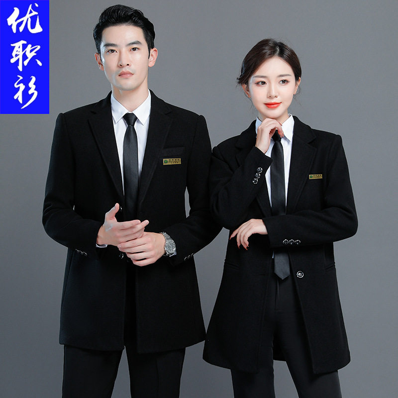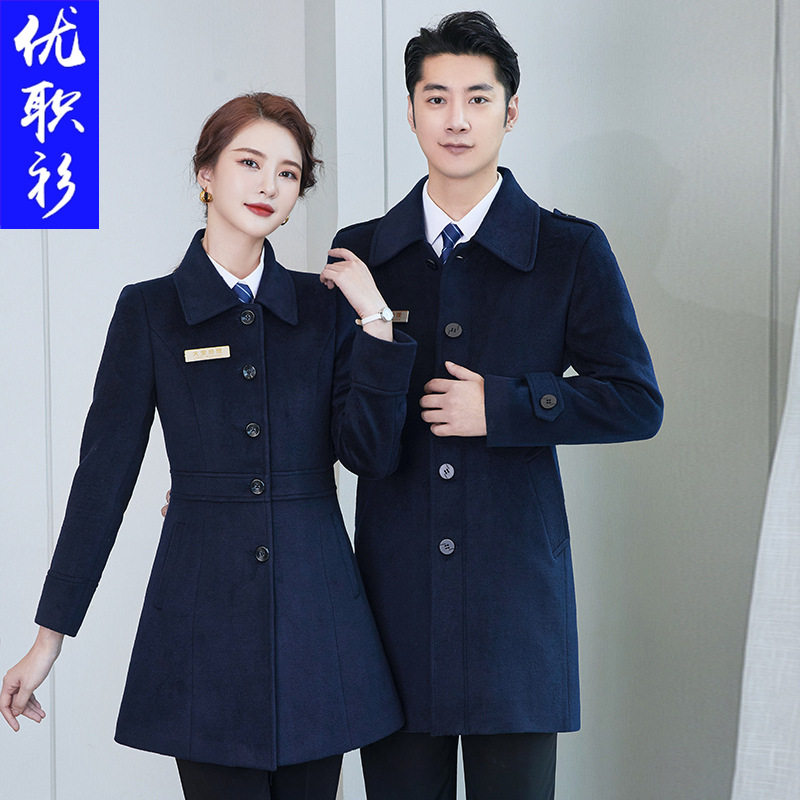 📚 羊毛职业装银行工作服酒店前台收银呢子大衣中长款外套女秋冬装男