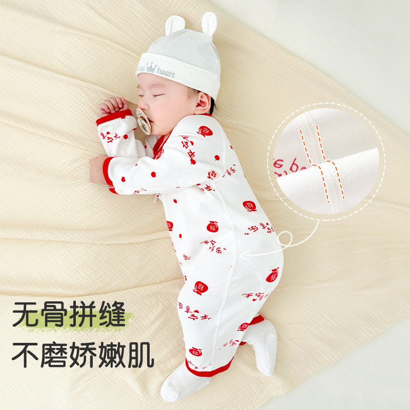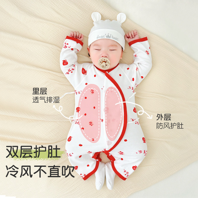📚 新生婴儿衣服春秋初生纯棉0和尚3月哈衣红色蝴蝶衣出生宝宝连体衣