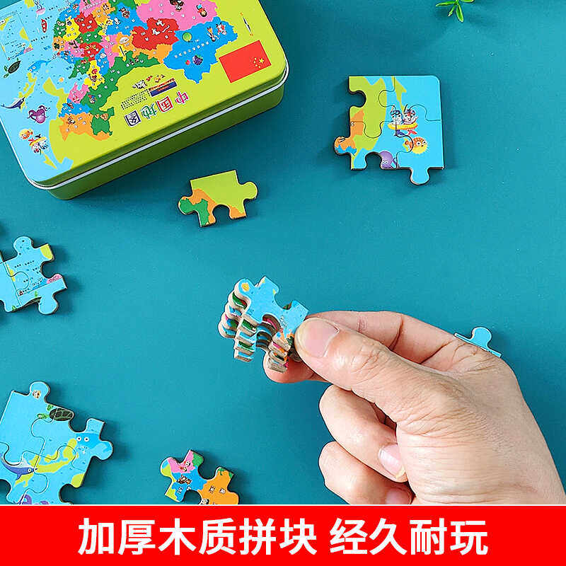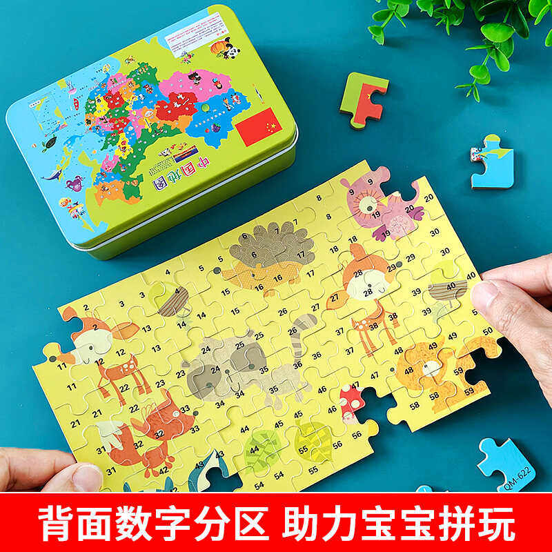📚 中国地图儿童拼图60片木质拼板3-6岁以上工程车4-5小男孩积木玩具