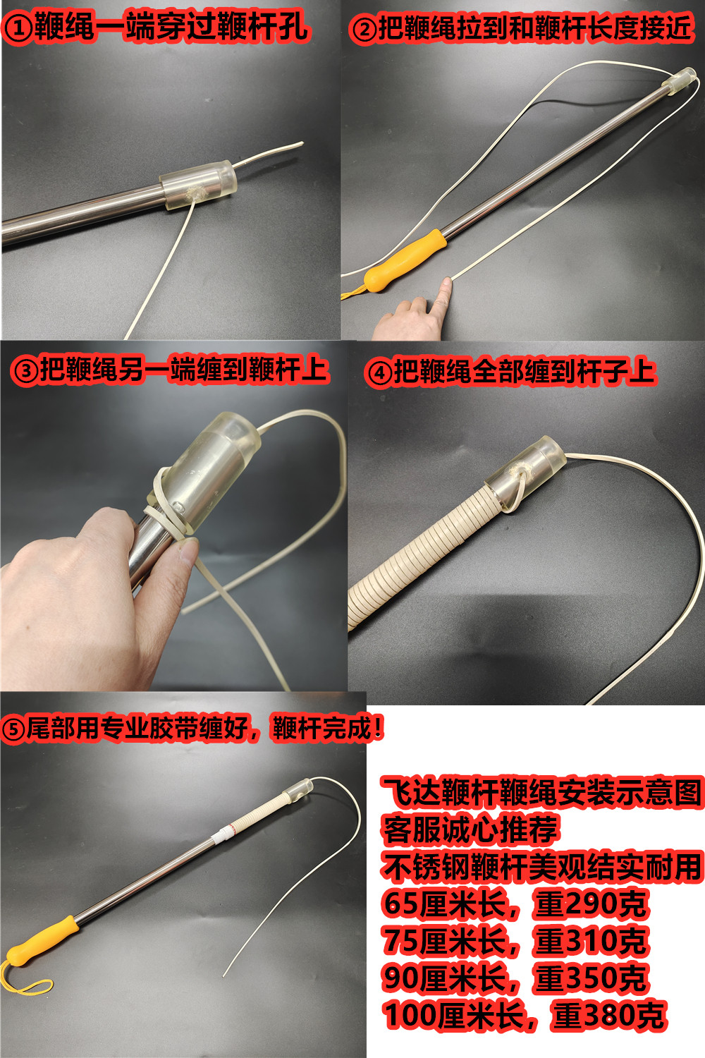 📚 飞达陀螺鞭绳特细3号线5号7号9号12号线黑白色鞭子鞭梢鞭稍鞭线