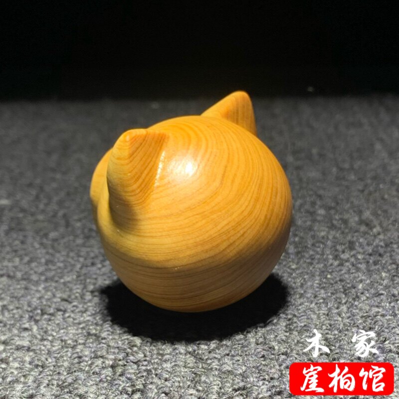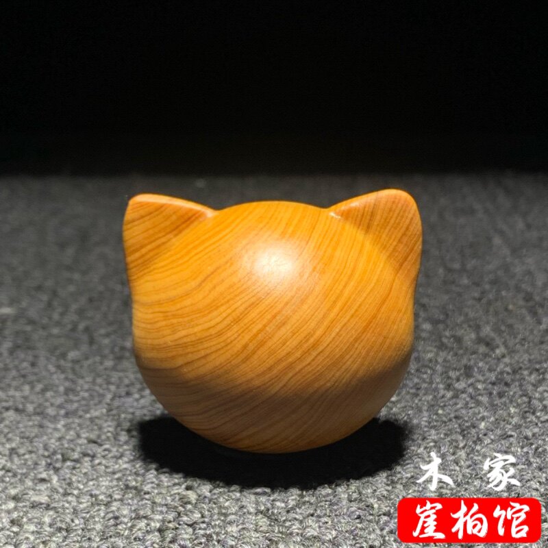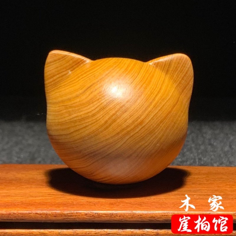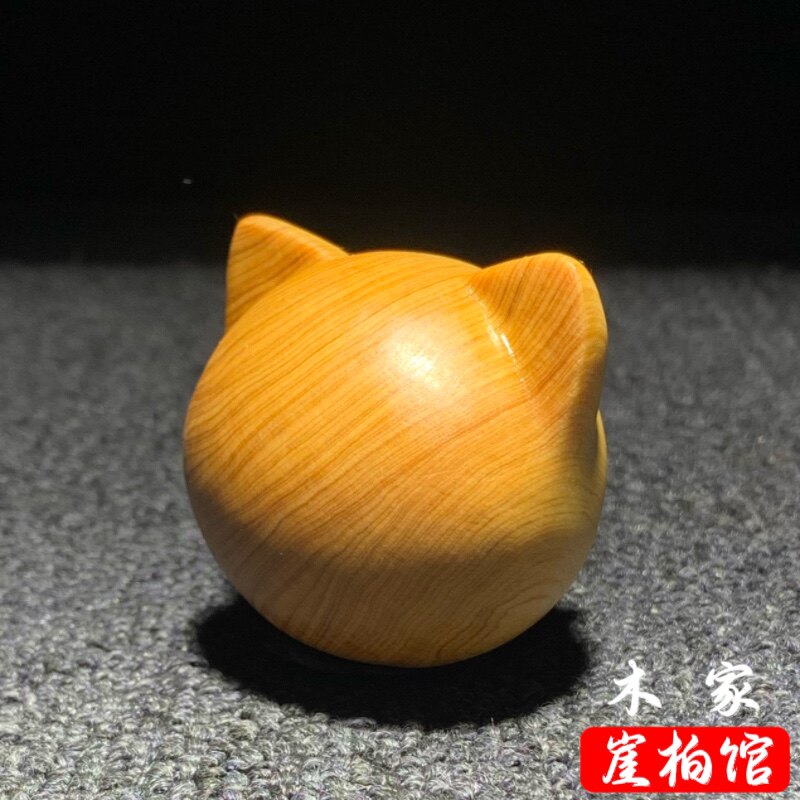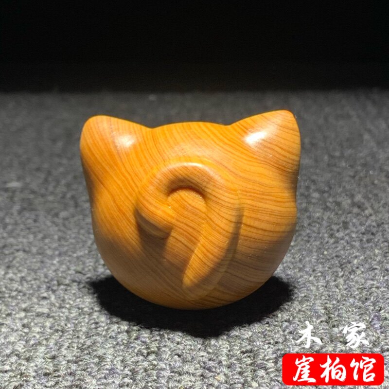 📚 天然崖柏木雕无相猫头手把件卡通可爱小猫解压手捻装饰品挂件摆件