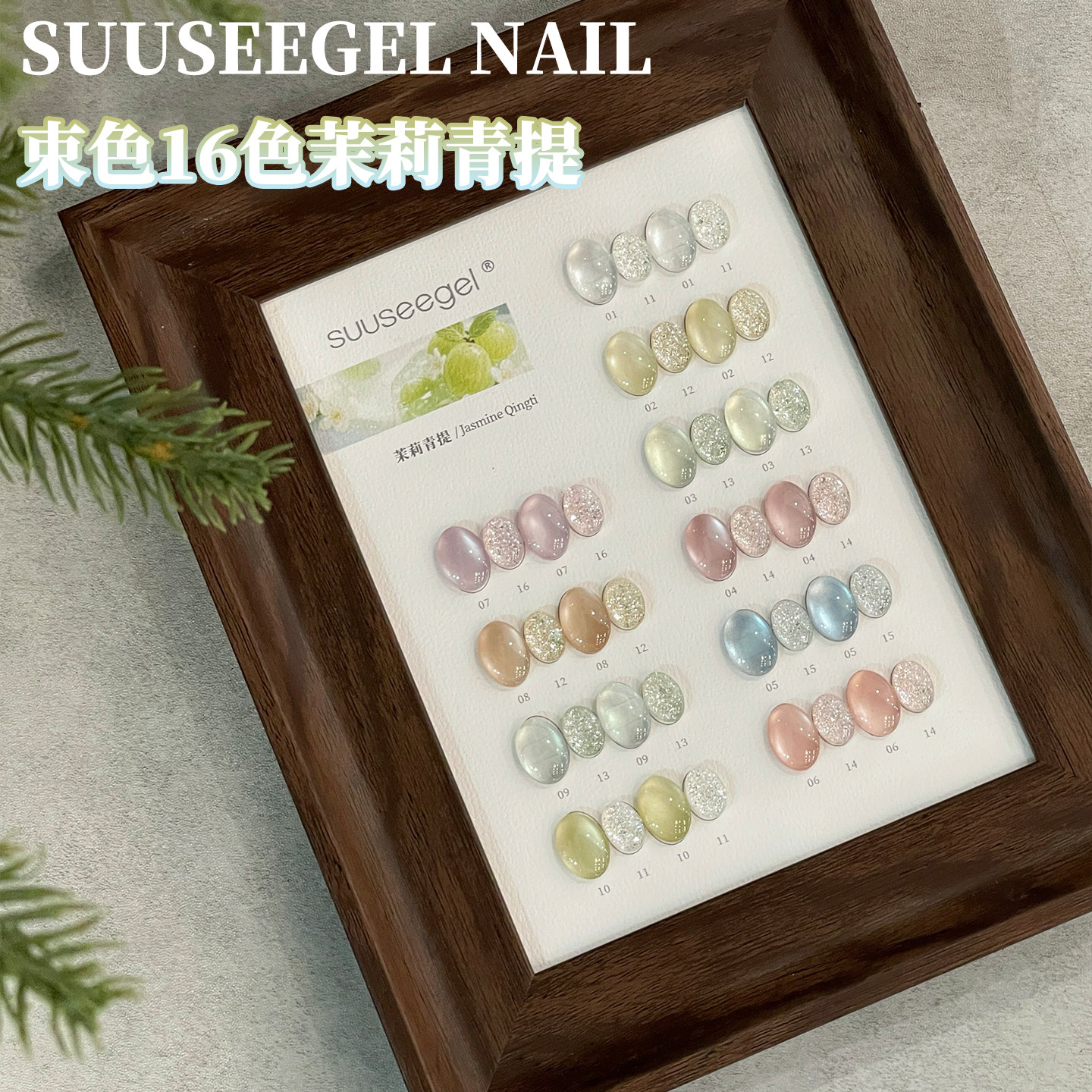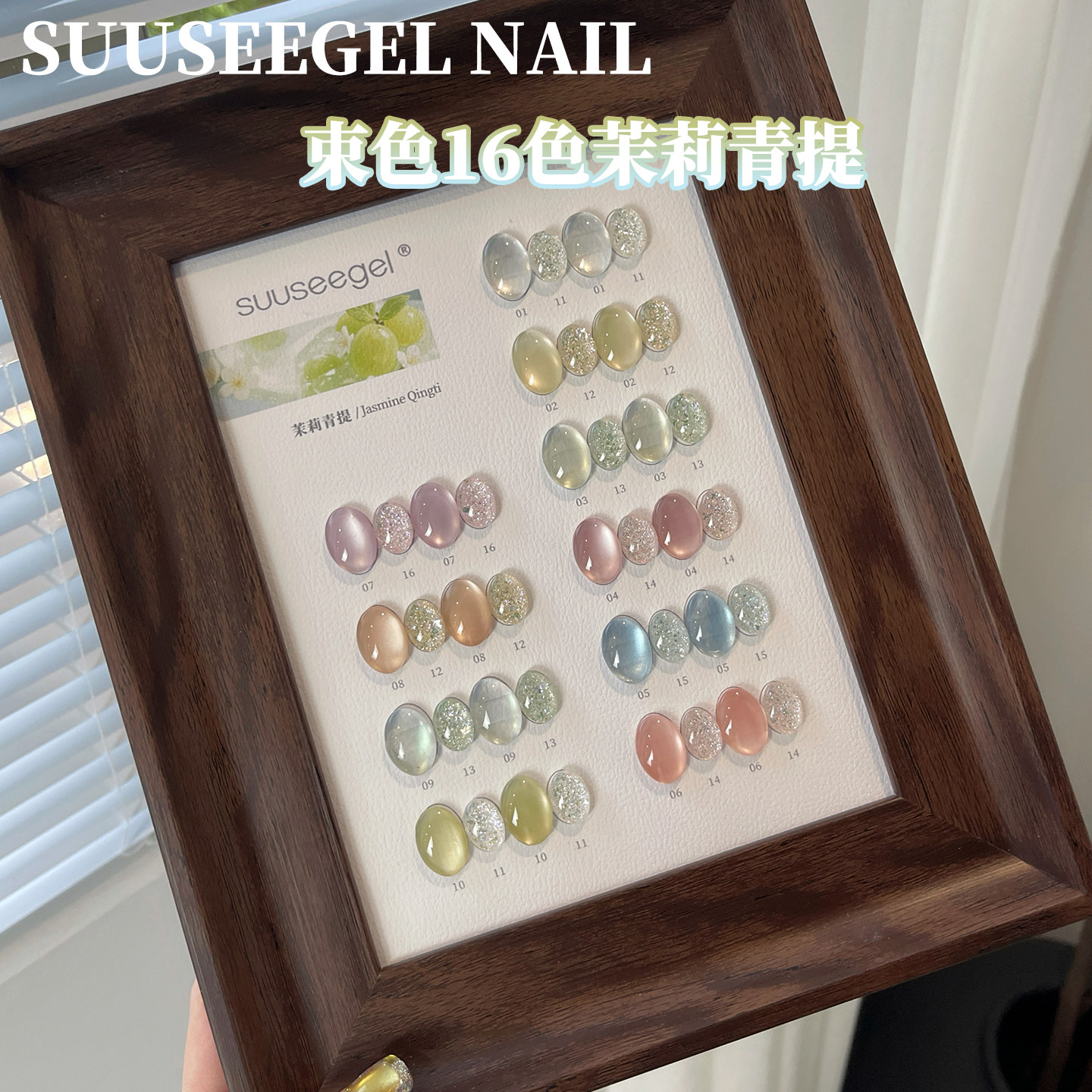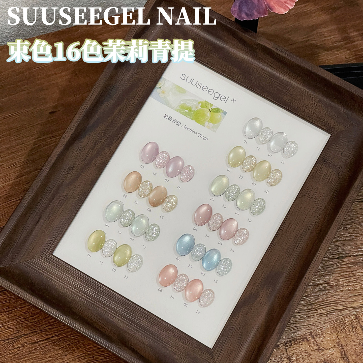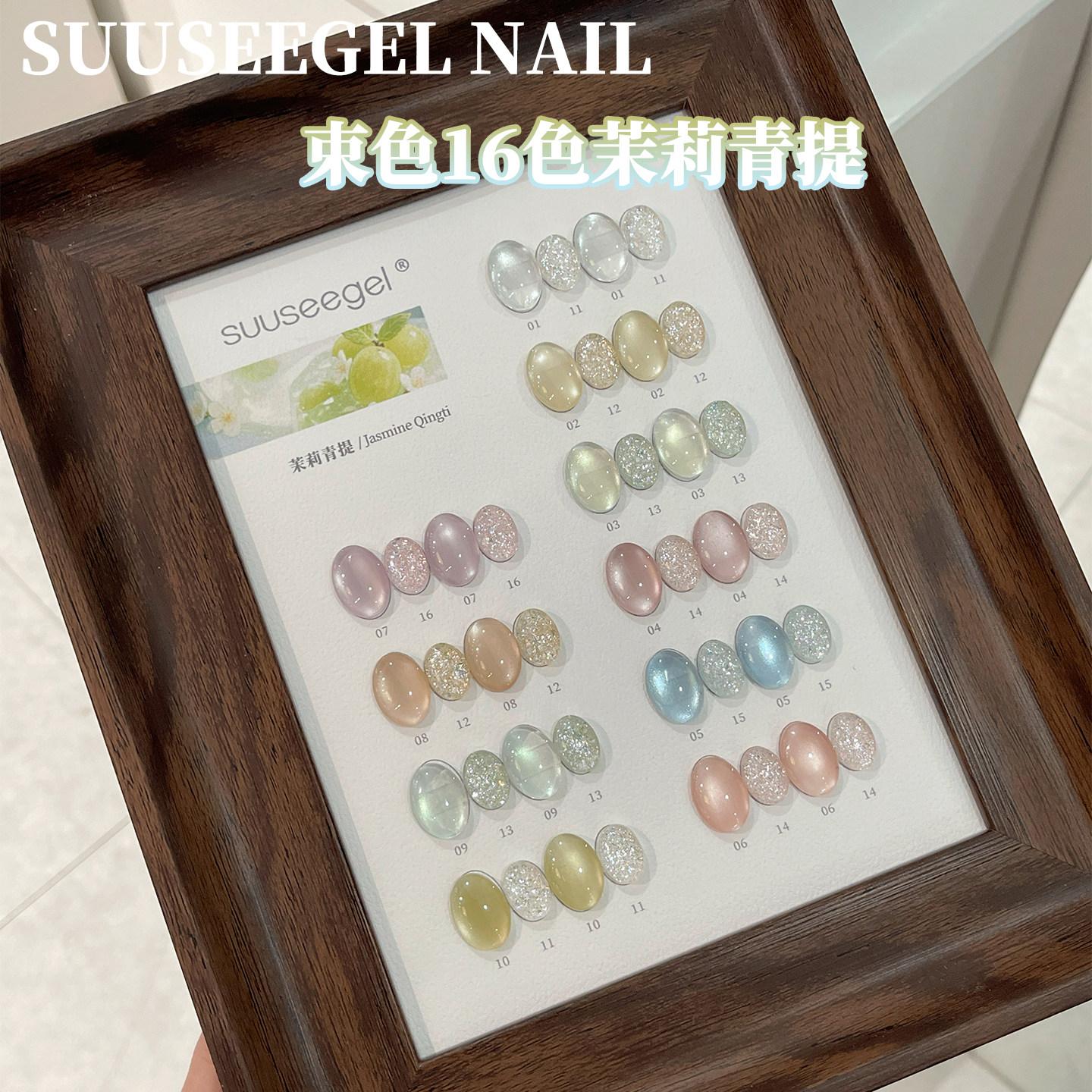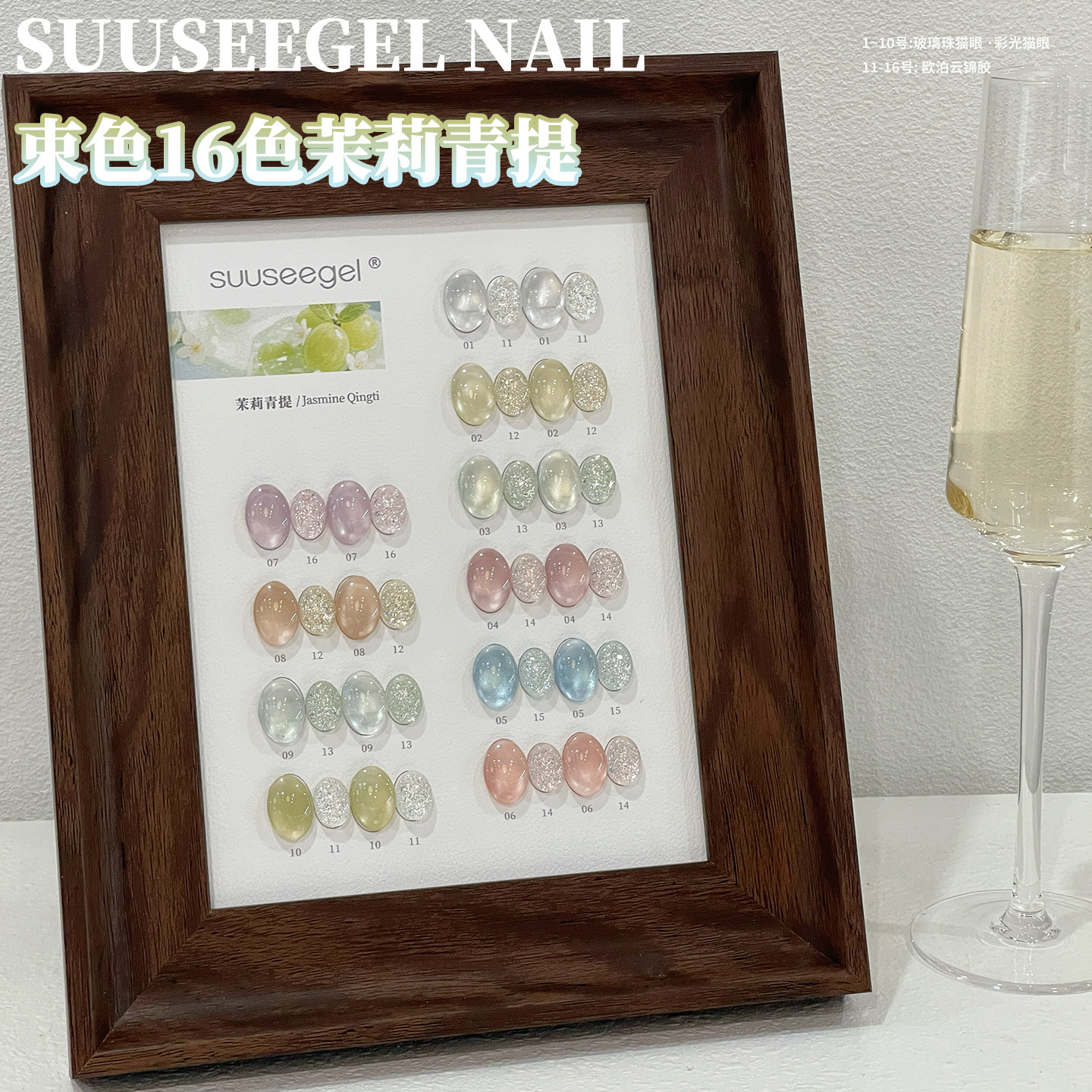 📚 爆闪彩光玻璃珠猫眼甲油胶束色16色茉莉青提碎钻胶流行显白小套系