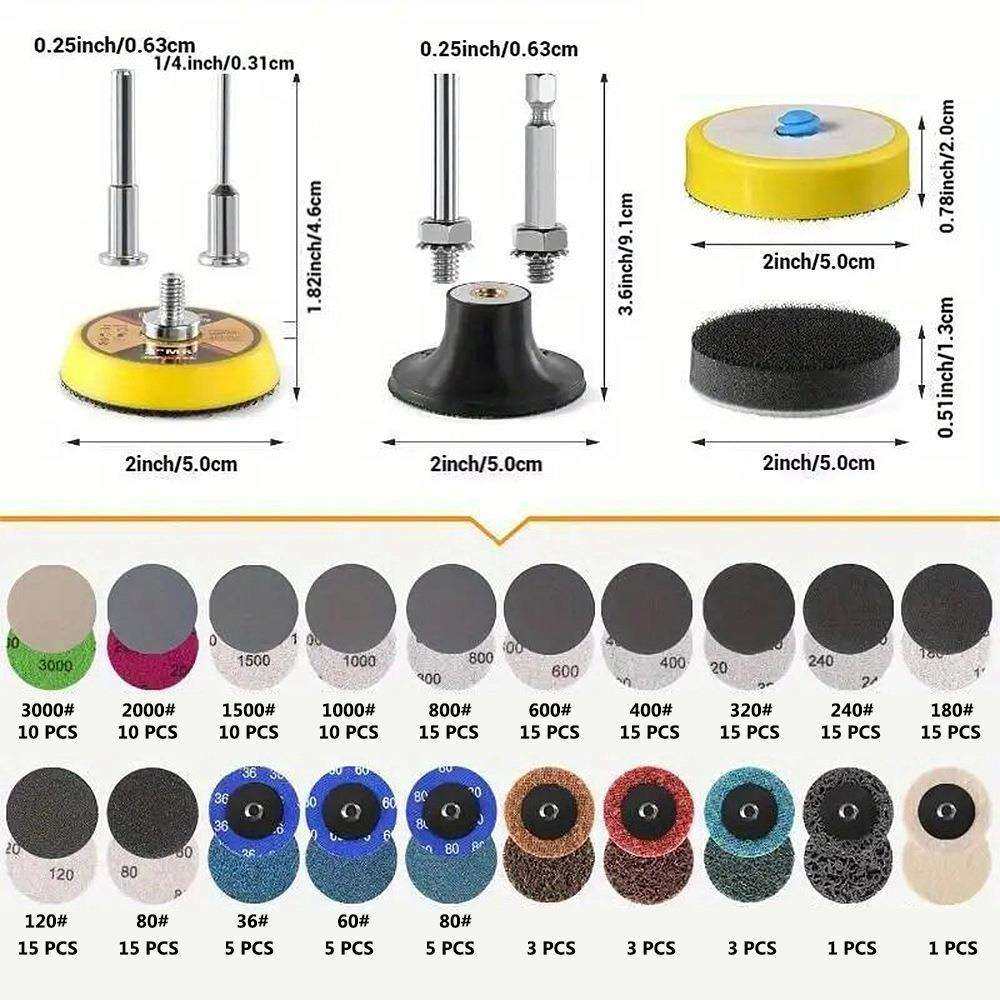 📚 2寸50mm转矩砂碟套装191件不织布转锁螺旋打磨碳化硅砂纸