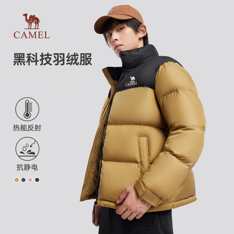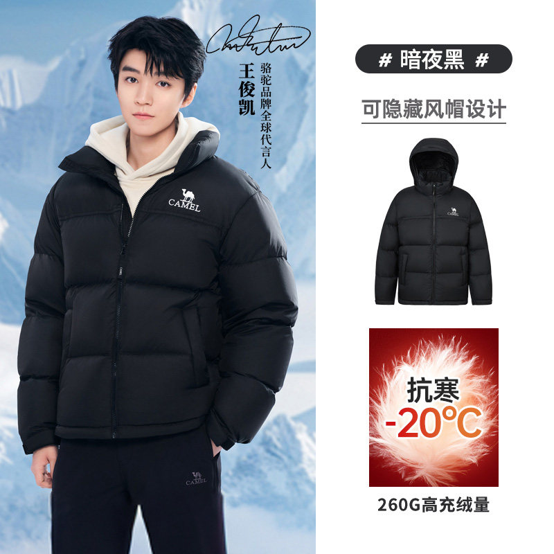 📚 王俊凯同款骆驼户外羽绒服外套男女秋冬款连帽加厚百搭短款面包服