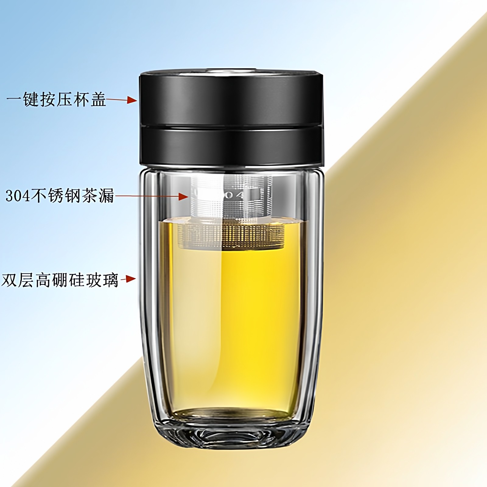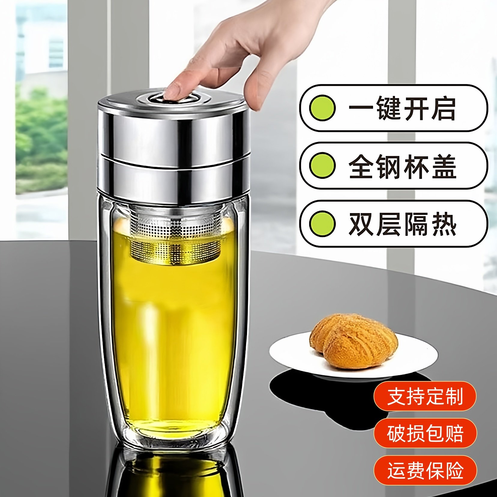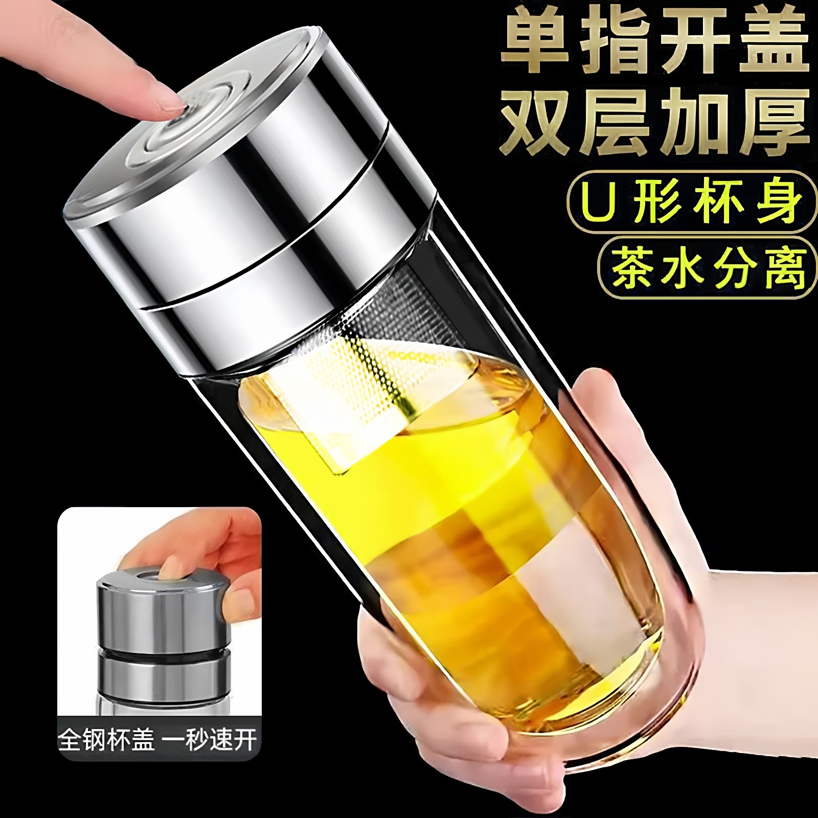 📚 一键开盖水杯子带茶隔热食品级男生款双层2025新款高端耐高温玻璃