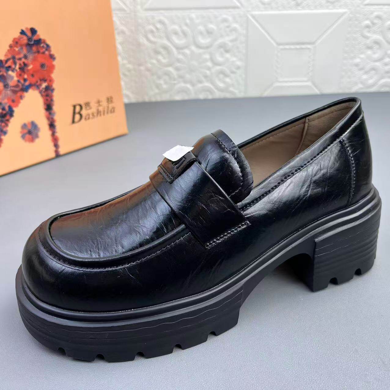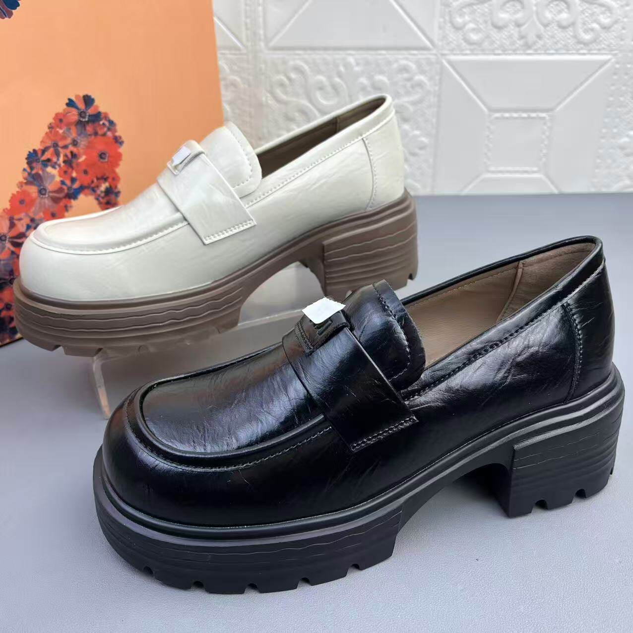 📚 奥莱撤柜处理时尚真皮乐福女鞋高品质新款厚底防滑耐磨浅口单鞋清