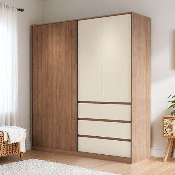 📚 实木二子推门拉门衣柜家用卧室小户DDQ型移门对开合一衣橱储物柜