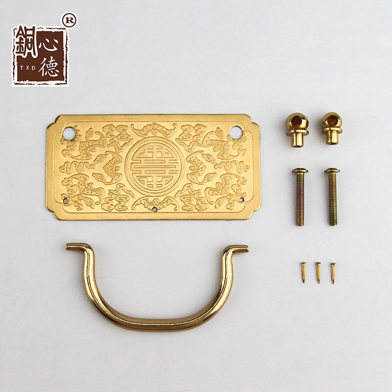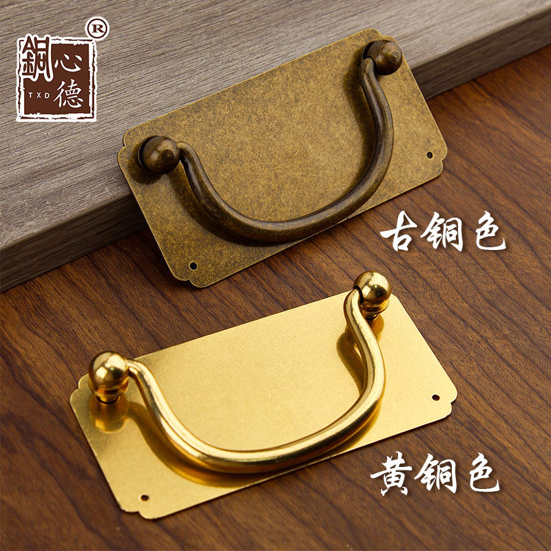 📚 中式黄铜拉手仿古金钱纯铜抽屉拉手复古家具柜门柜子药柜把手拉环