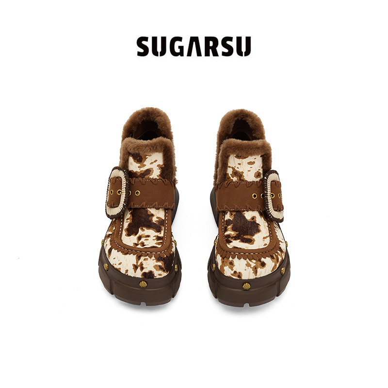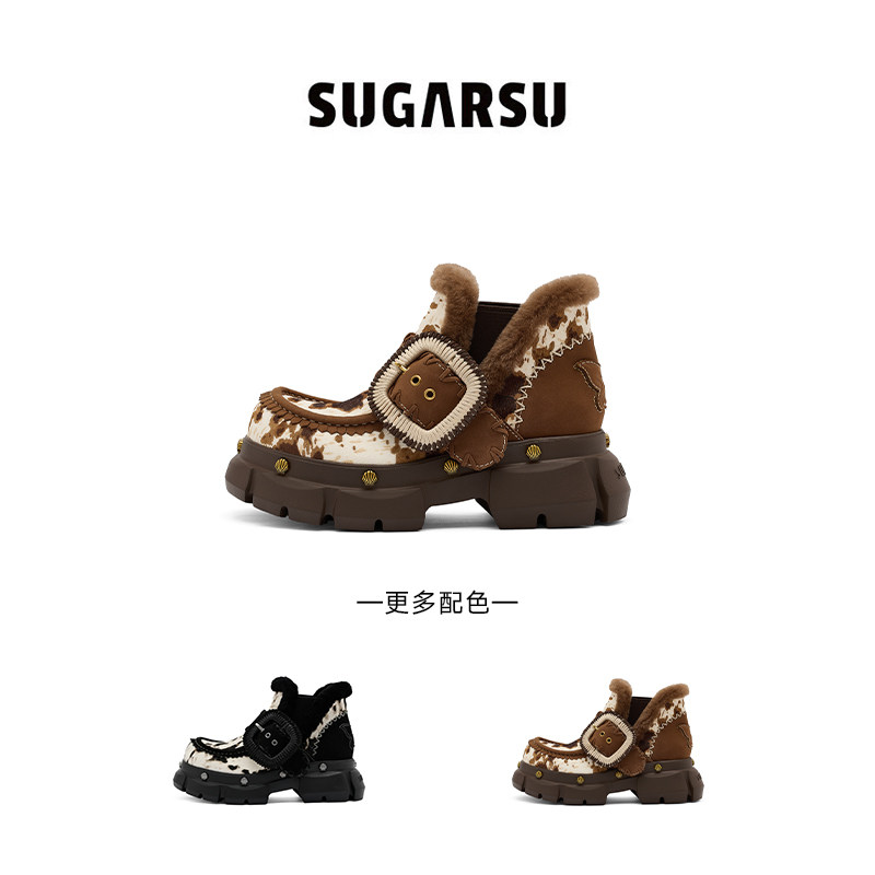 📚 SUGARSU酥履 秋冬新款复古皮毛一体加绒加厚翻毛厚底雪地短靴女