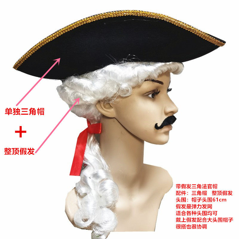 📚 cos宫廷海盗帽加勒比杰克海盗伯爵帽连假发法官帽律师帽律师假发