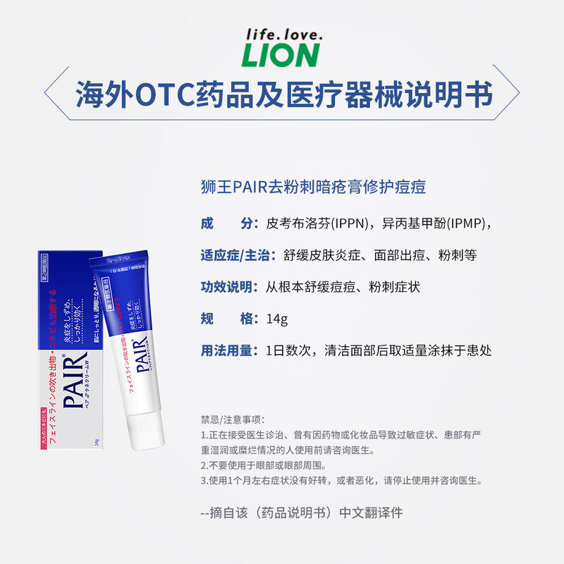 📚 日本原装LION狮王祛痘膏PAIR可渗透缓解炎症治疗面部出痘粉刺14g