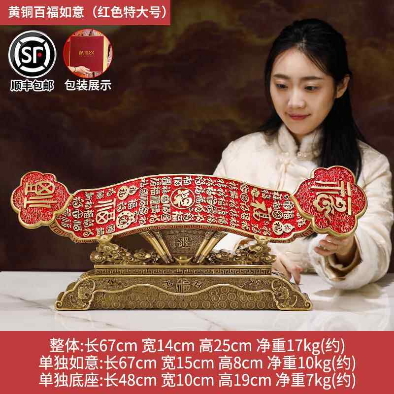 📚 正品大铜世黄室铜百福如意摆家居办公家桌面装饰品乔迁新居贺寿件