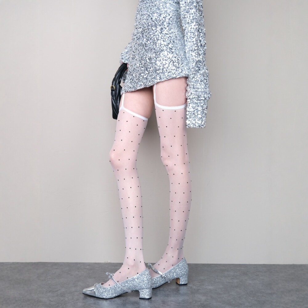 📚 猝不及防的心动~极光油亮波点长筒纯欲吊带超薄连裤袜女奶乖减龄