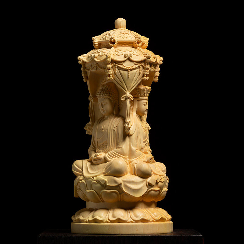 📚 黄杨木家用供奉佛像实木摆件阿弥陀佛大势至观音菩萨木雕娑婆三圣