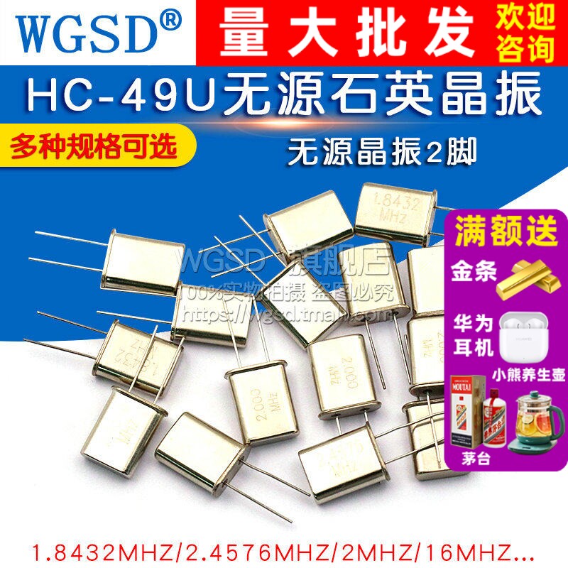 📚 HC-49U 晶振 2.4576/2/6/10/16M/11.0592MHZ 2脚无源晶振 1.8432M