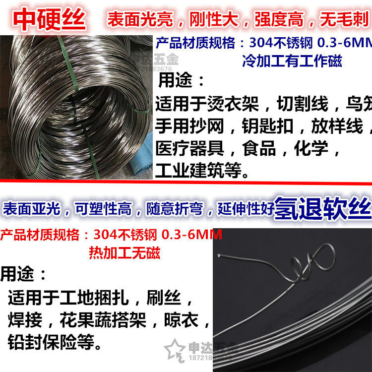 📚 304不锈钢丝单根1/1.2/1.5mm光亮中硬细软焊丝捆扎烫衣架钢丝线