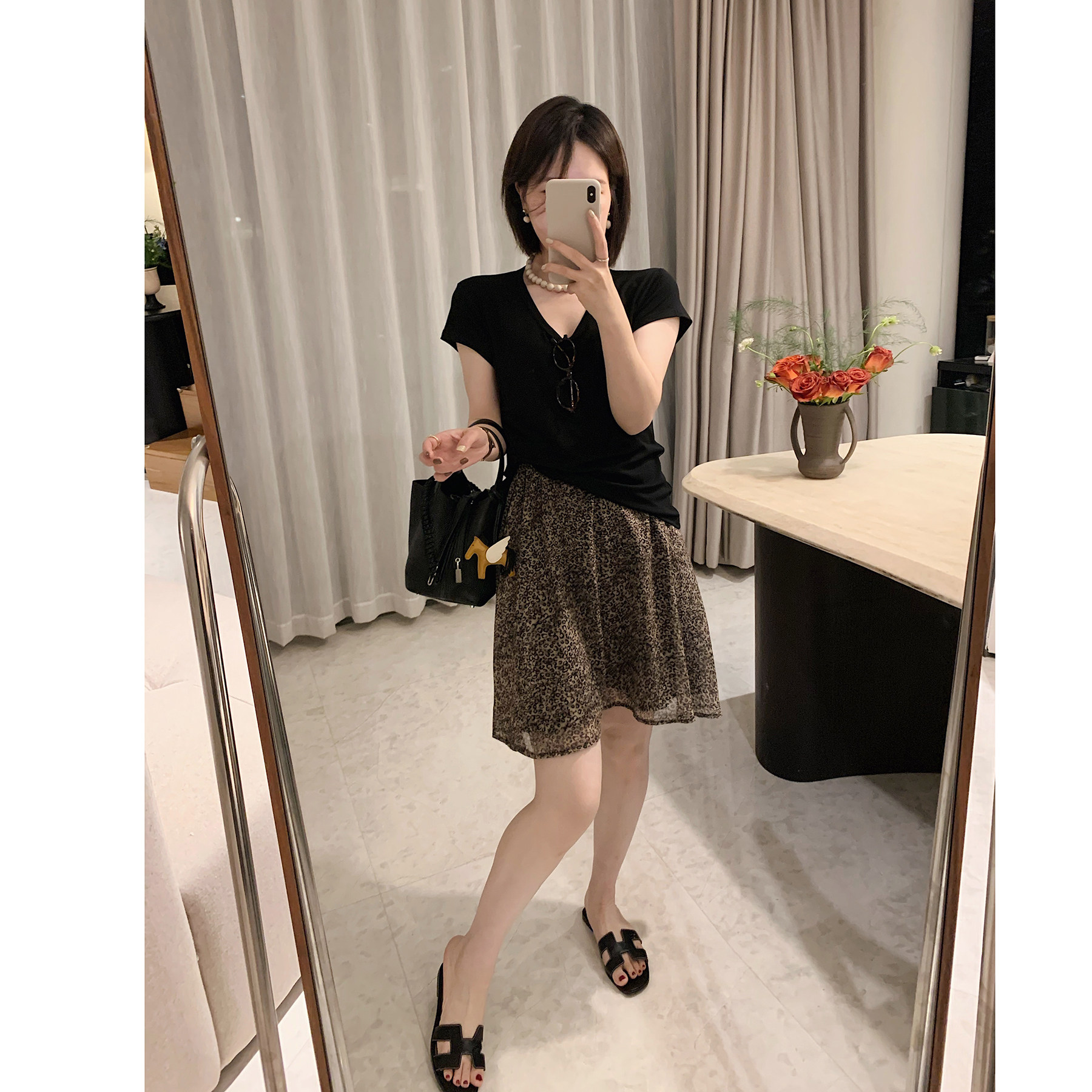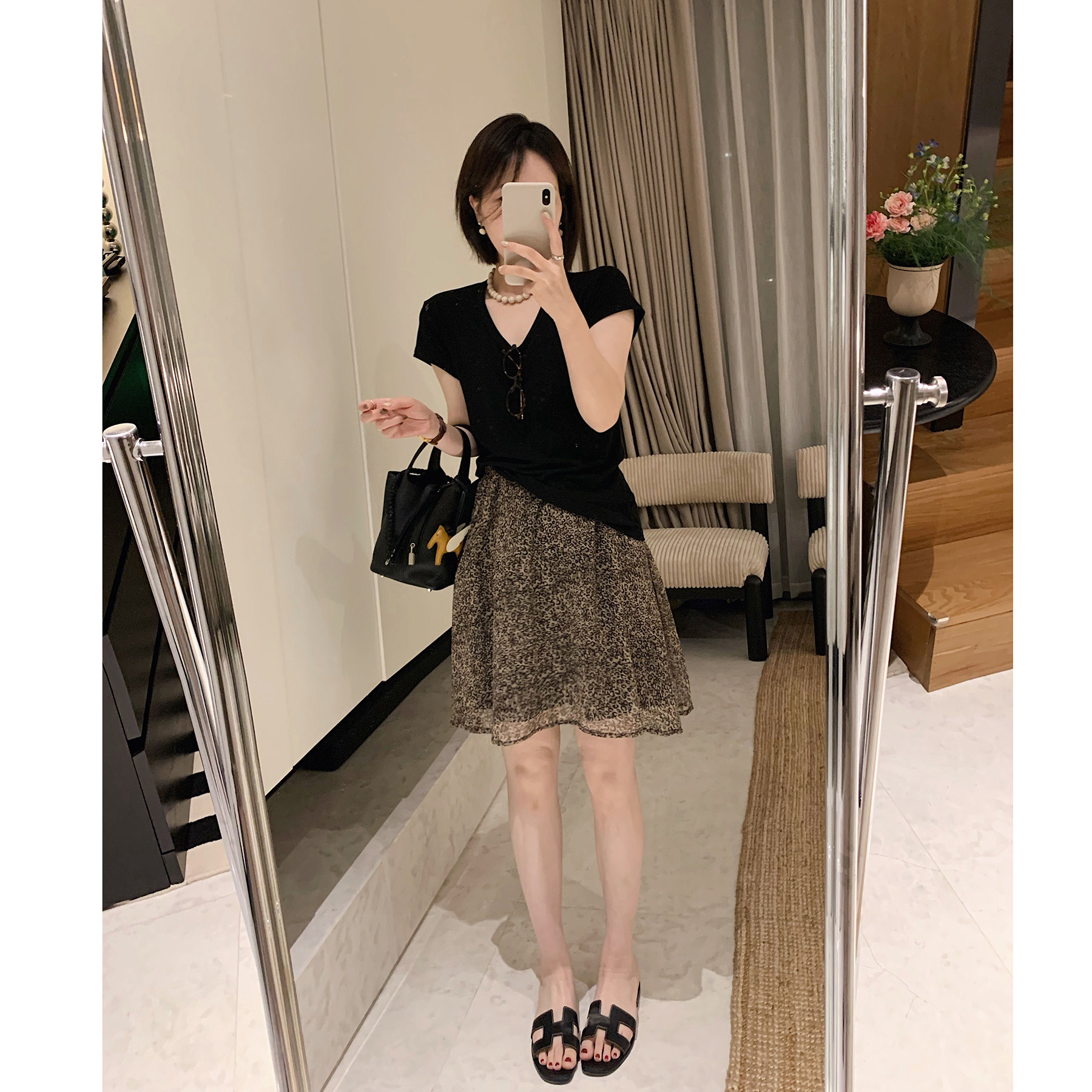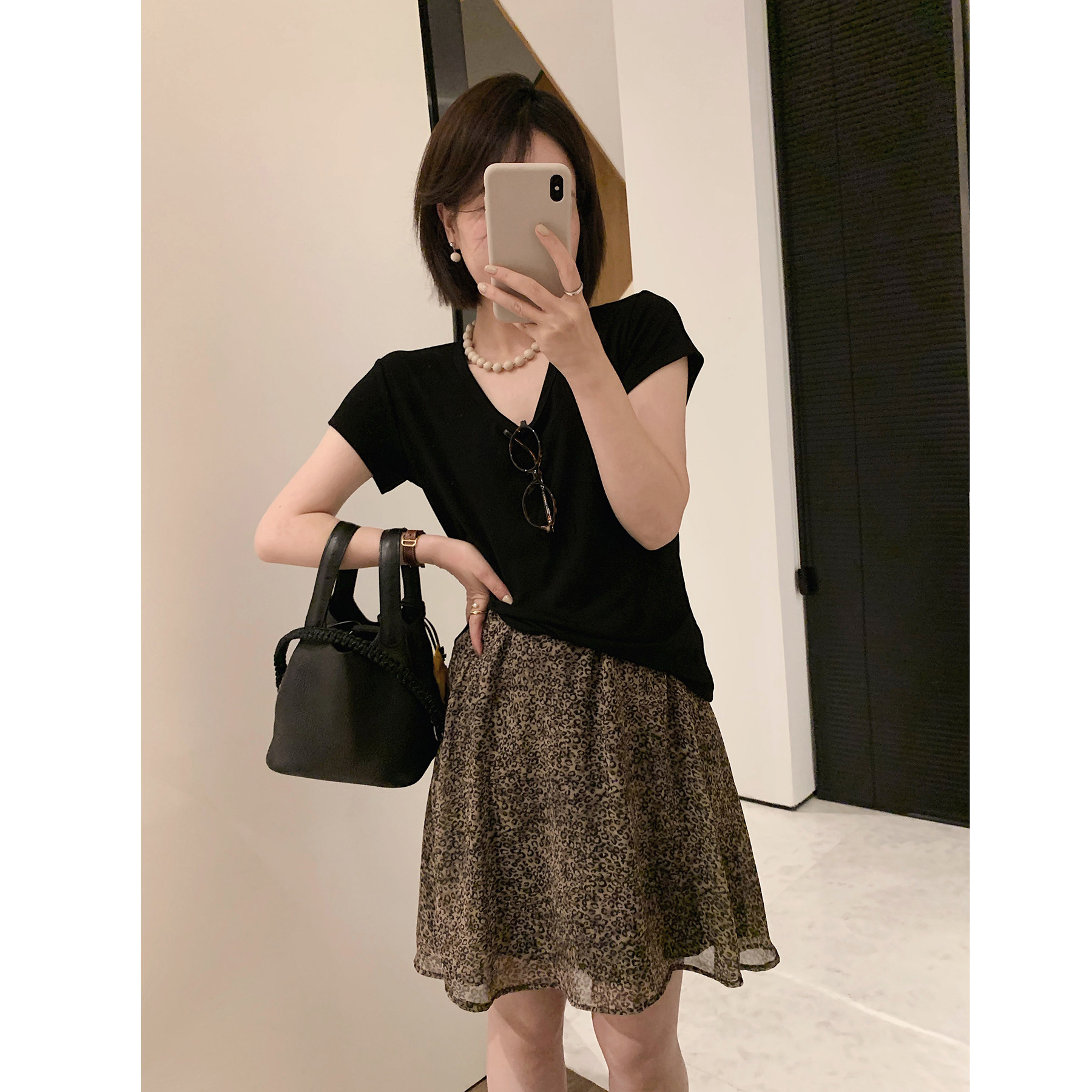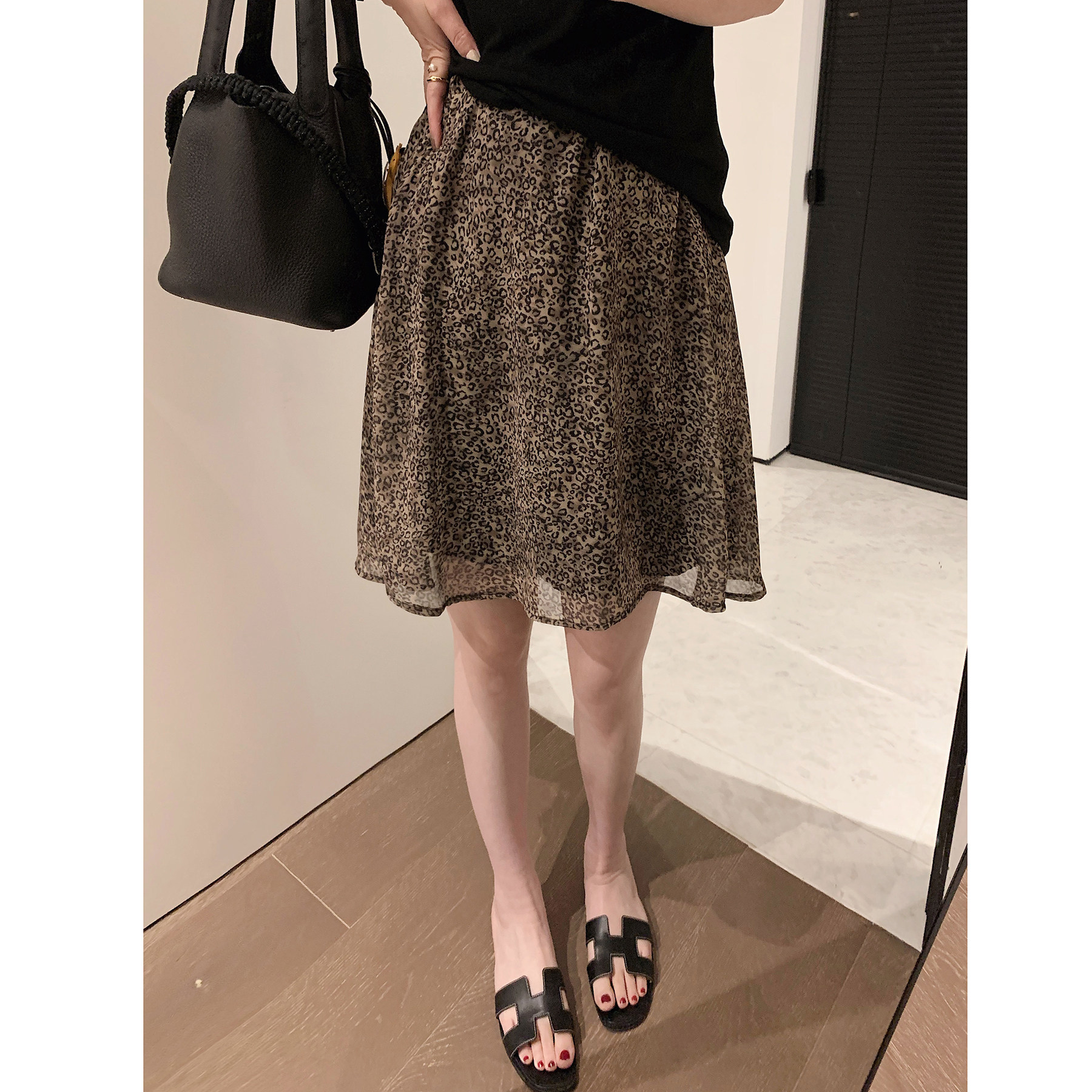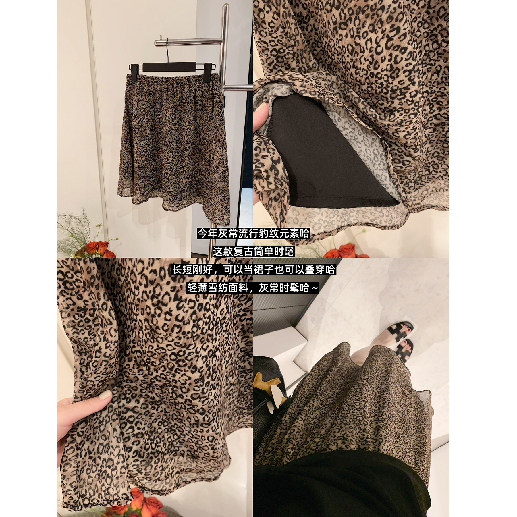 📚 misslady时髦雪纺豹纹短裙松紧腰舒适百搭气质半身裙优雅显瘦新款