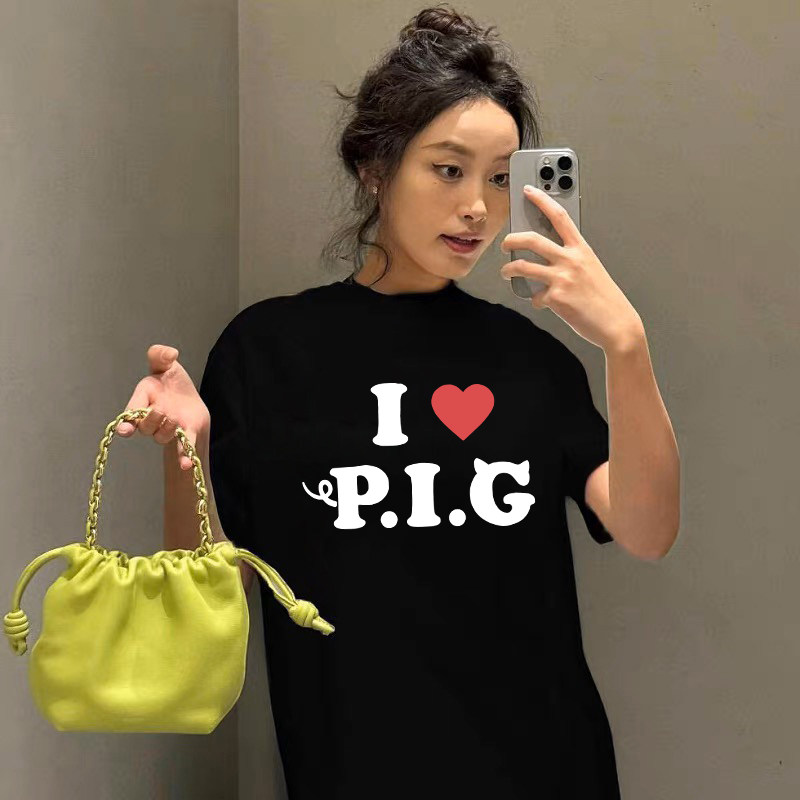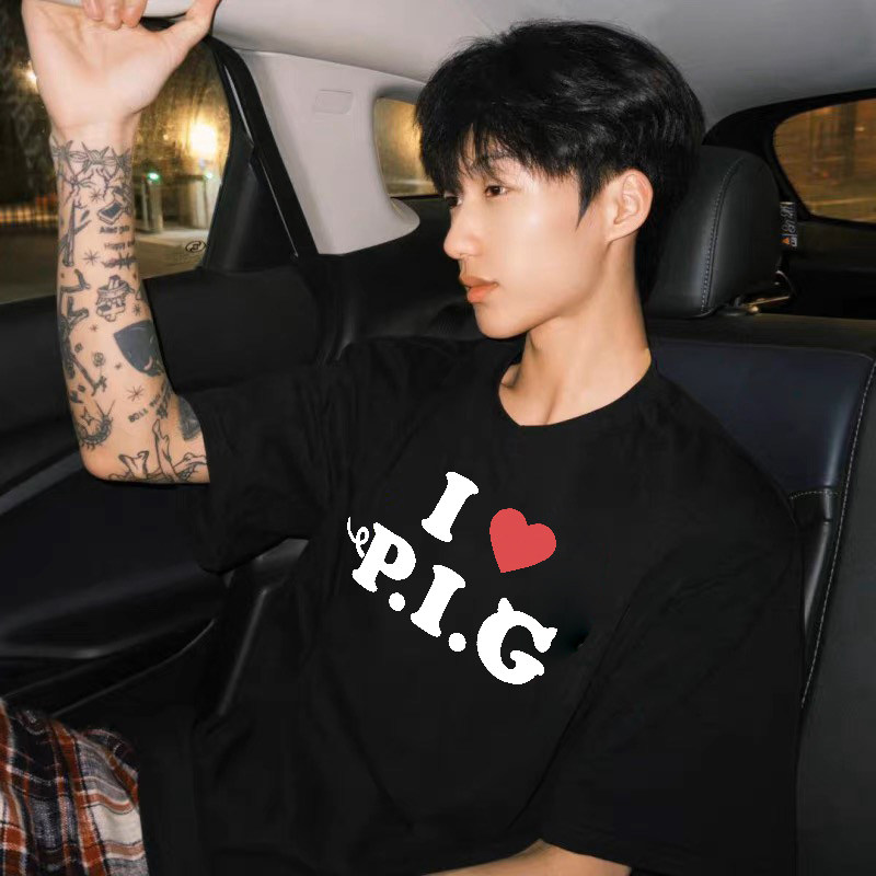 📚 MerryWannaBe MWB capper同款“我爱猪”英文标语男女美式短袖T恤
