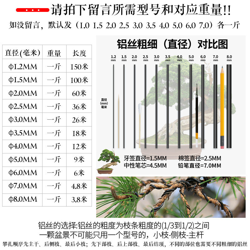 📚 盆景铝丝造型铝线定型专用蟠扎盘扎器园艺软无皮齐全材料固定退火