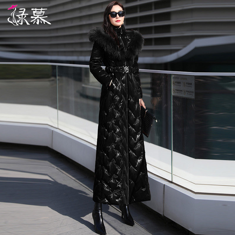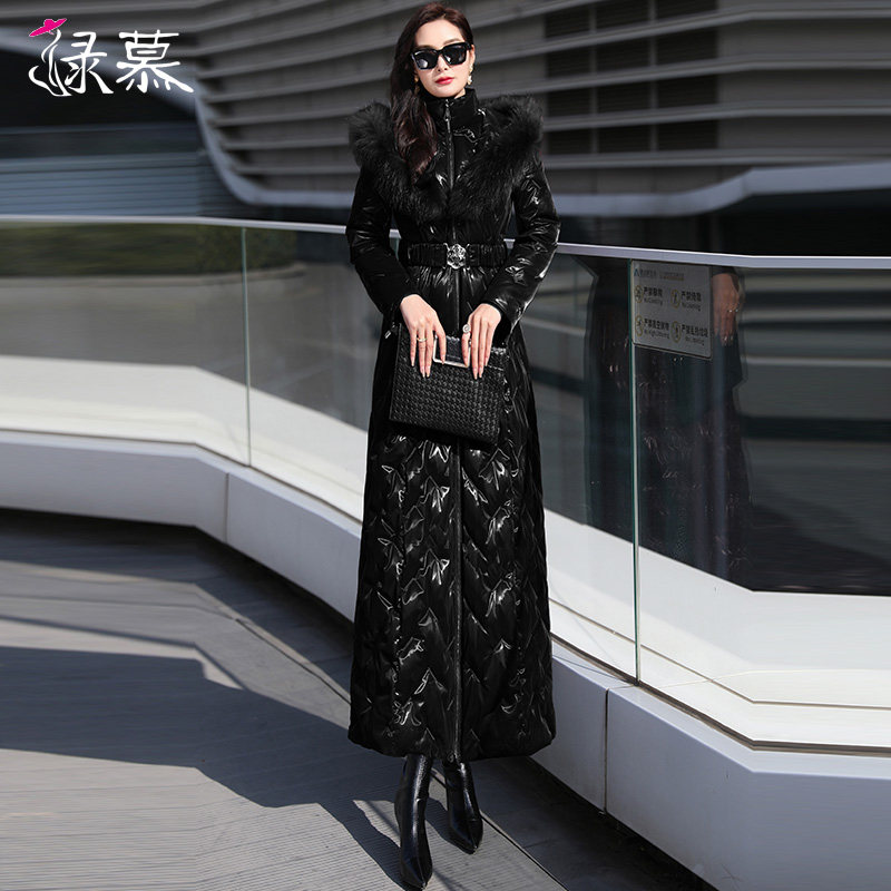 📚 黑色羽绒服女2025冬季新品高端修身长款连帽奢华大毛领白鸭绒外套