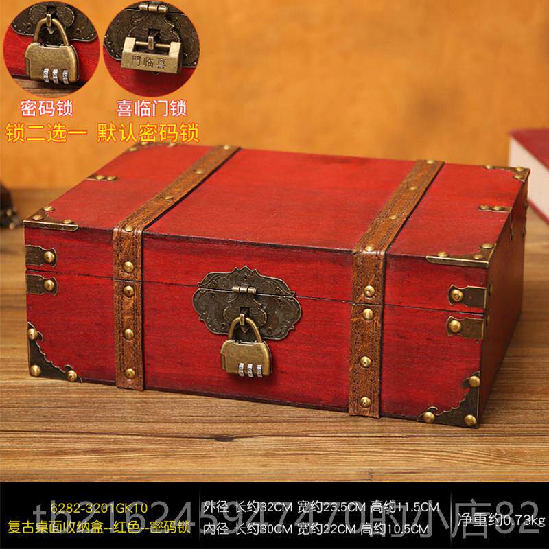 📚 高档小木盒子古复收纳盒储大号木箱子锁家用首饰物盒收藏盒带密码