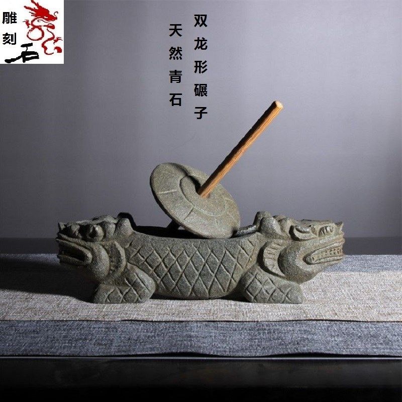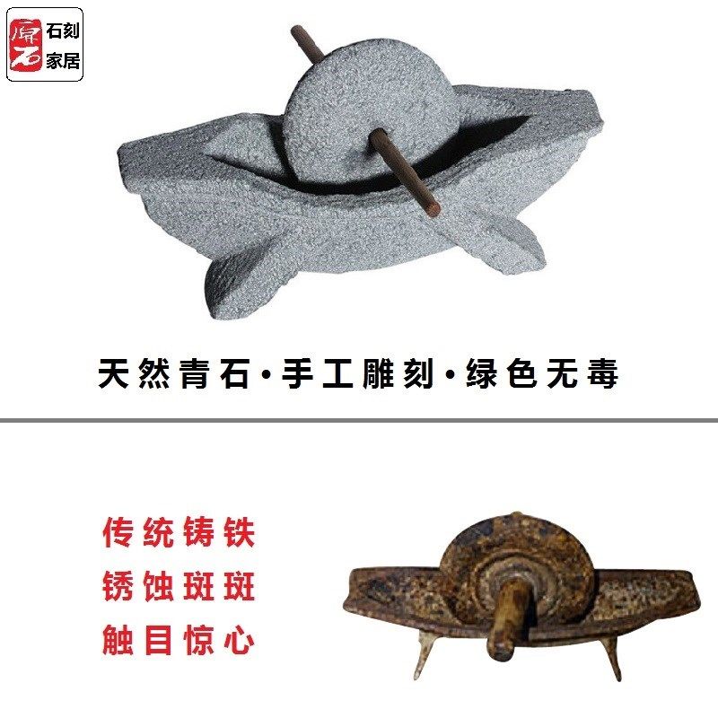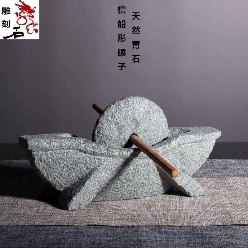 📚 惠安石雕天然青石头老式石碾子研磨器手工茶玩药碾子家用茶具碾槽