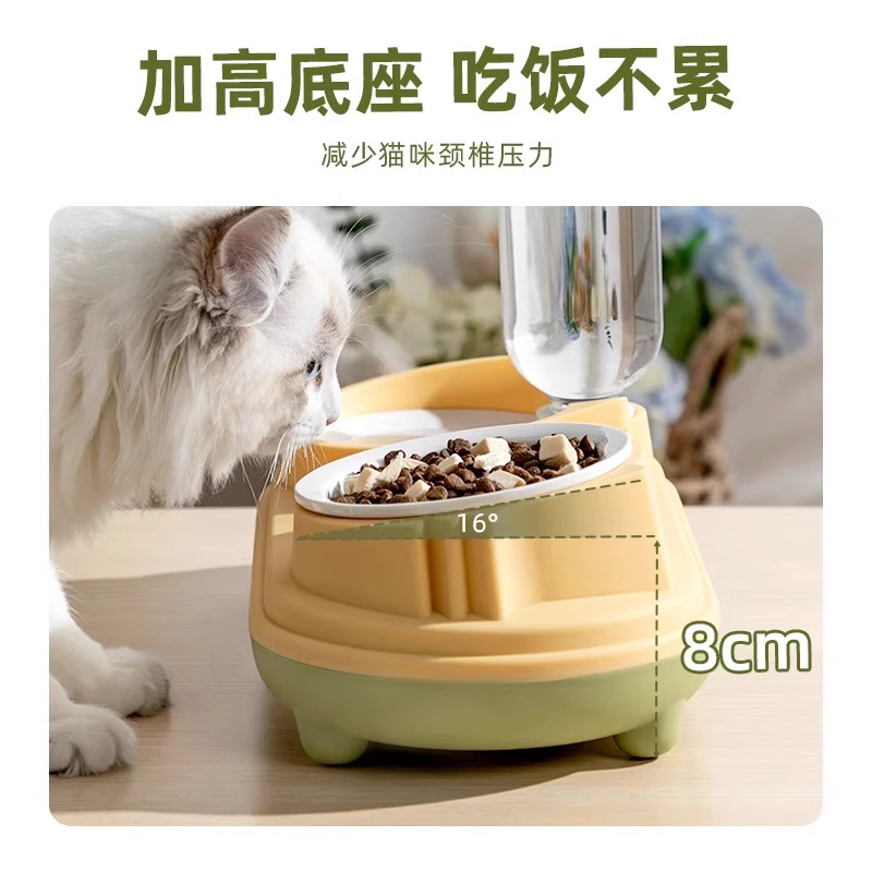 📚 猫碗双碗自动饮水狗盆粮食二合一防打翻宠物碗护颈慢食碗喝水盆