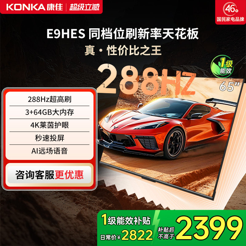 📚 康佳电视E9HES 65英寸288Hz高刷智能家用液晶电视机以旧换新补贴