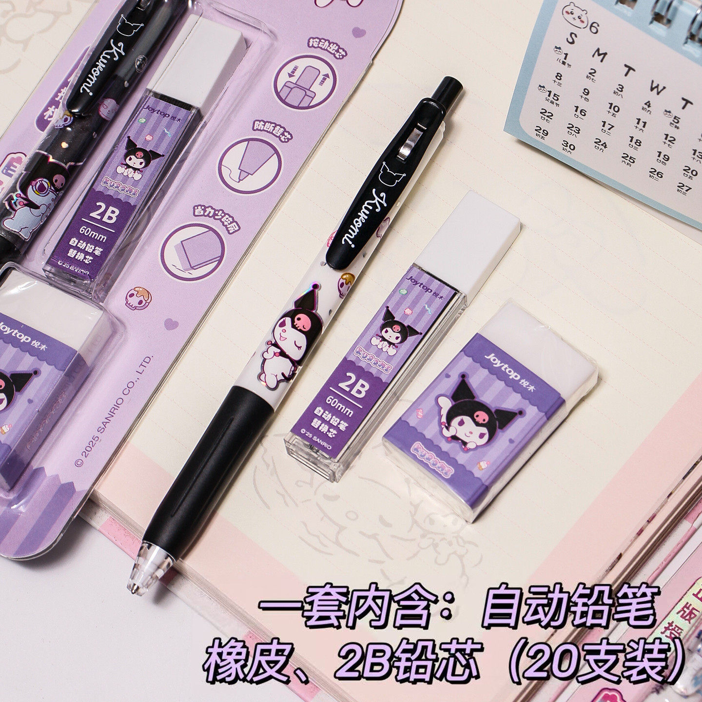 📚 悦木正版三丽鸥联名自动铅笔套装库洛米2B铅笔小学生专用高颜值儿童幼儿园书写笔防断芯考试按动活动铅笔