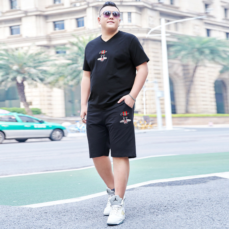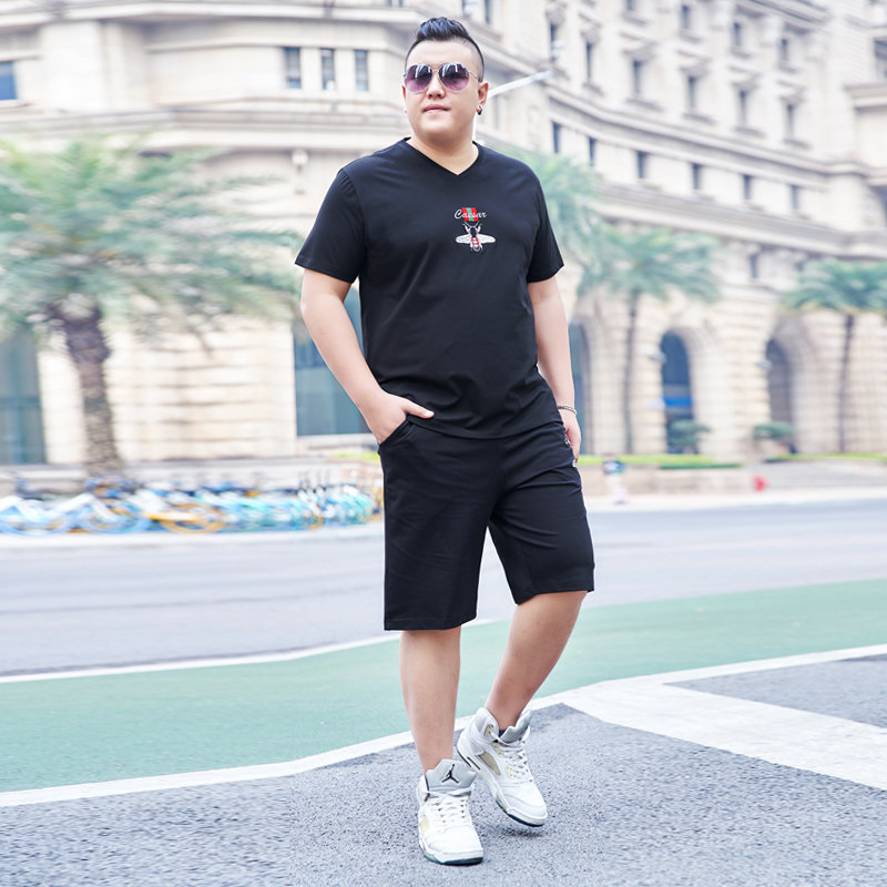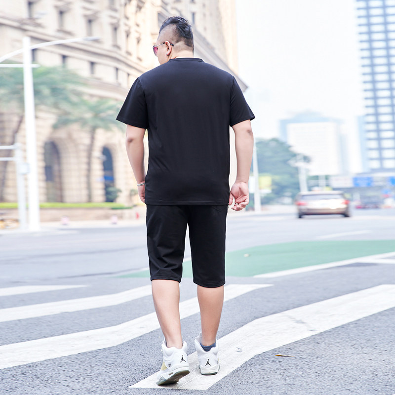 📚 男装加肥加大码五分裤t恤休闲运动套装肥佬超大号胖人夏天两件套