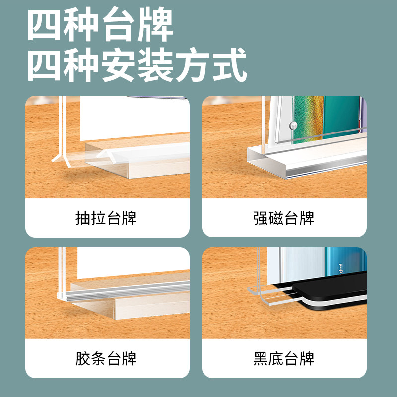 📚 亚克力台牌A4桌牌台卡展示牌A3抽拉强磁台签T型台卡架双面透明广告牌价格牌水牌L型桌面立牌菜单餐牌定制