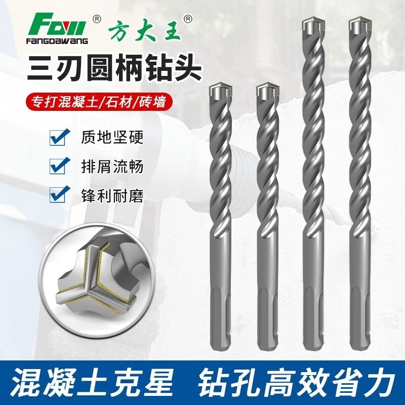 📚 方大王电锤钻头打孔钻孔圆柄水泥三刃钻头混凝土钻墙冲击钻