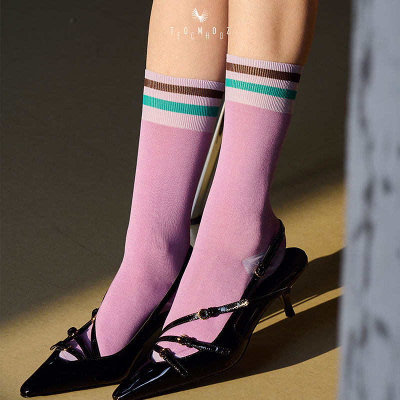 📚 Tomoz Echo/明日回声杂志风纯色条纹中筒女袜无骨皮鞋袜节日礼物