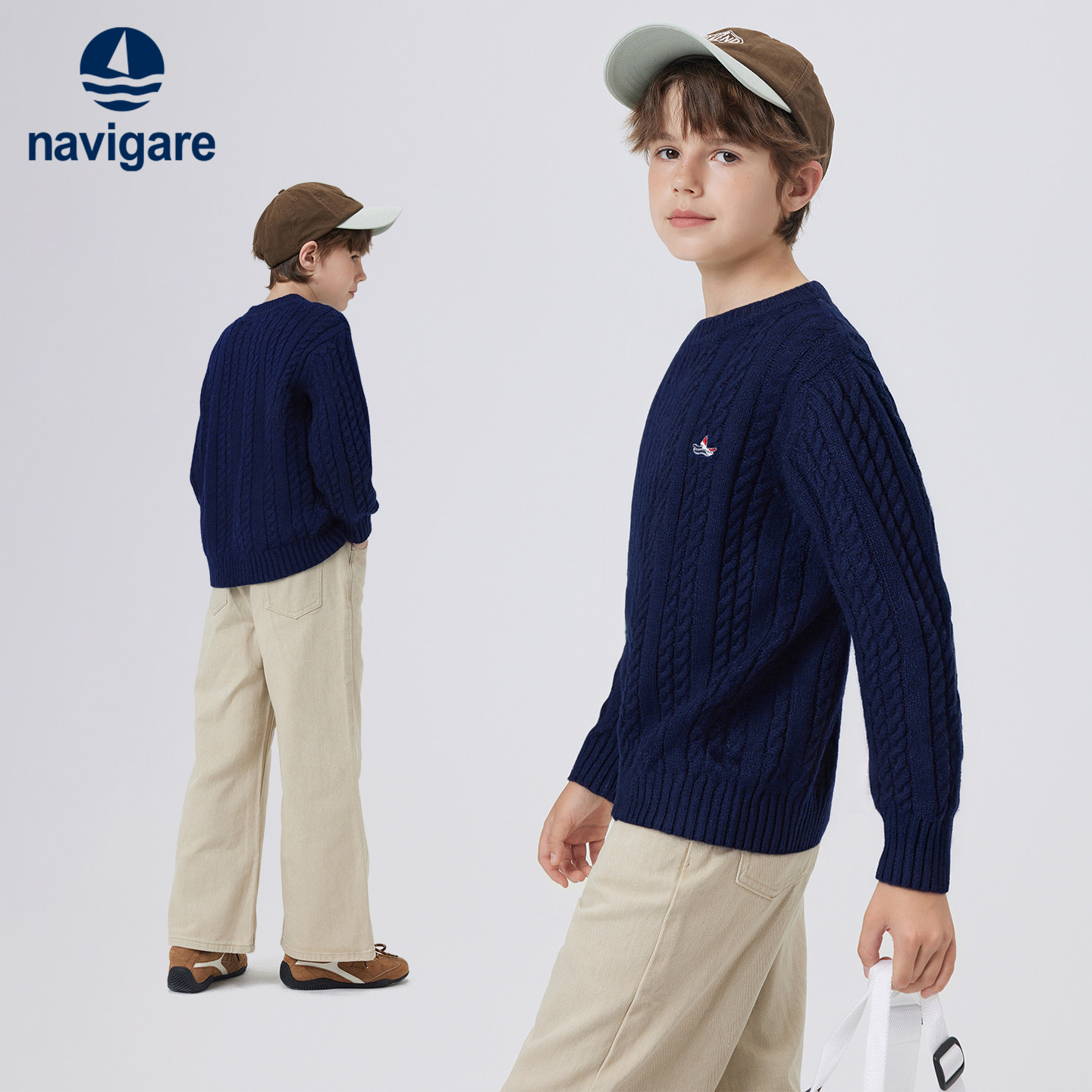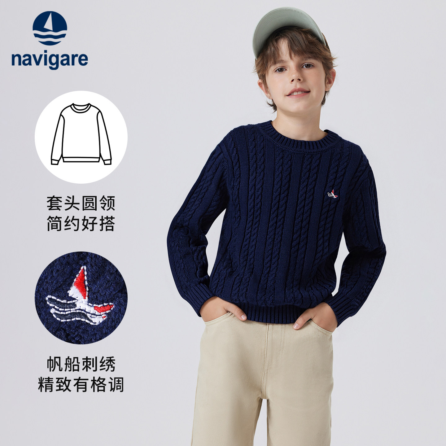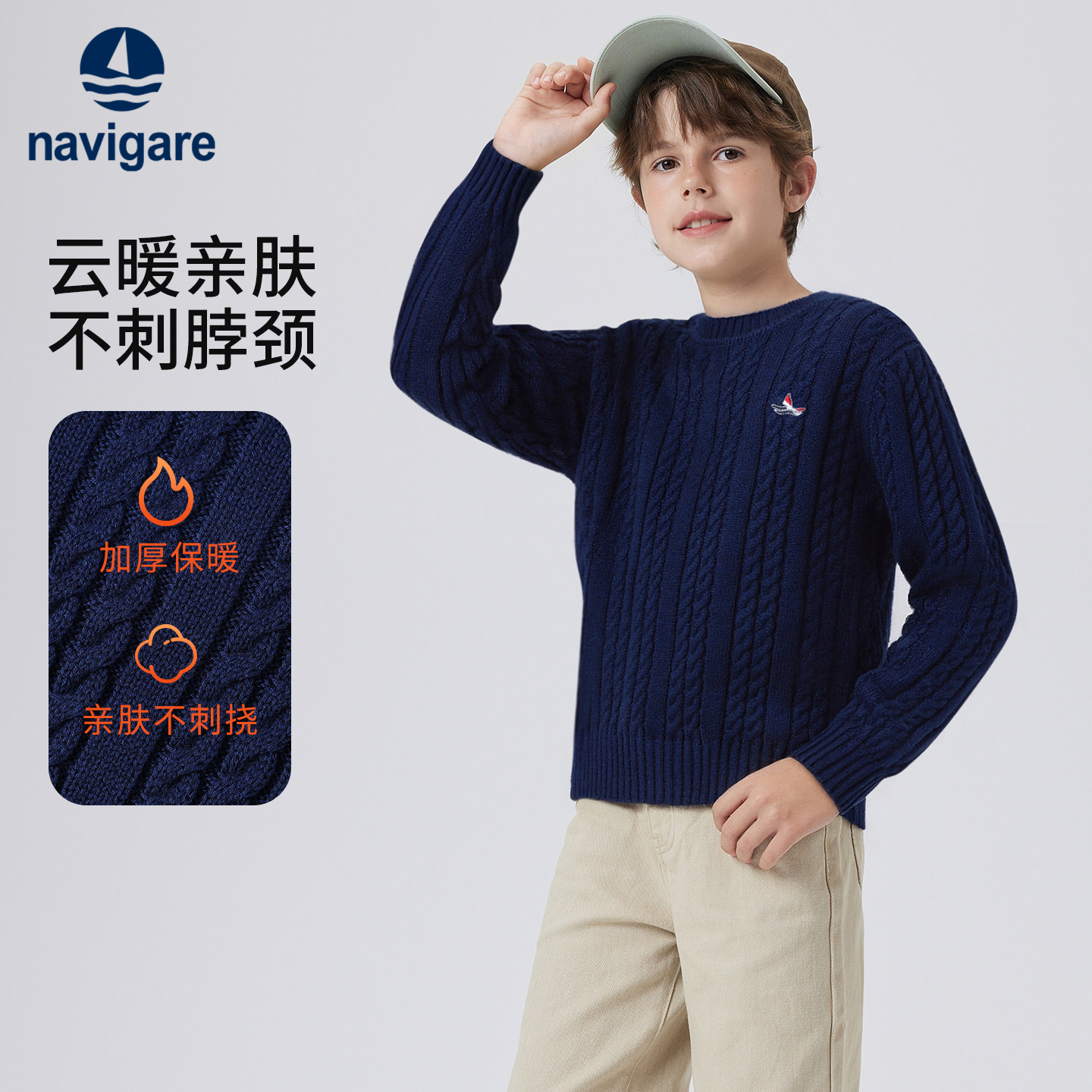 📚 Navigare意大利小帆船儿童针织衫冬季加厚保暖男孩红色毛衣上衣