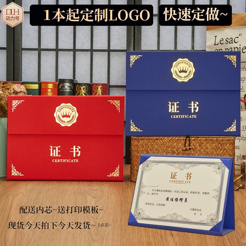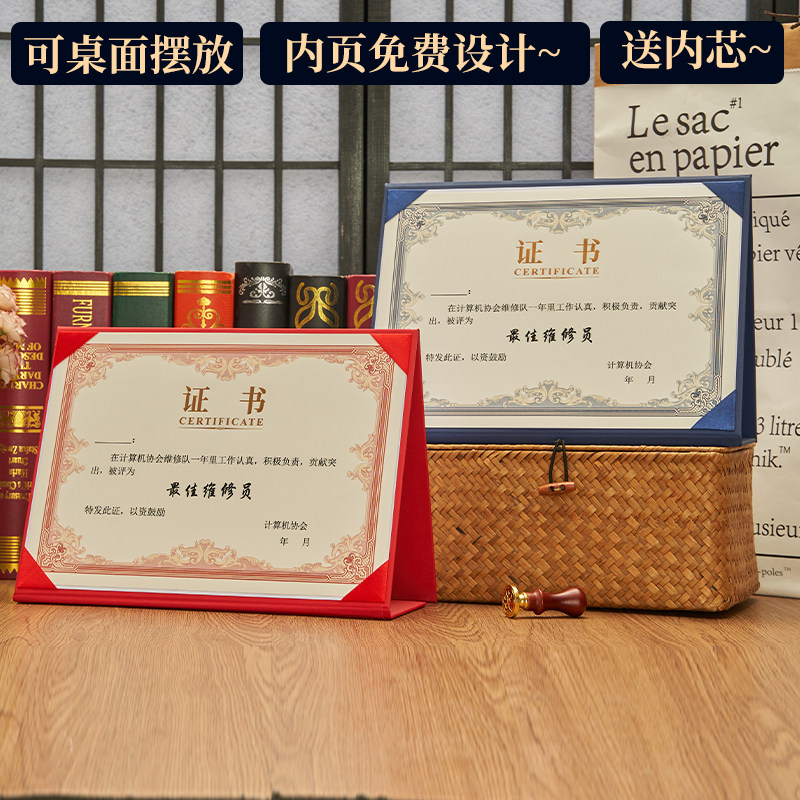📚 证书烫金高档三折结业荣誉奖状可立封皮定制培训聘书感谢信a4外壳