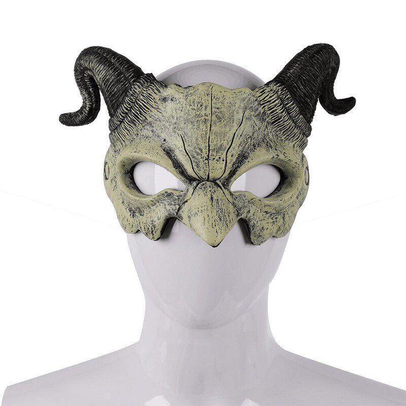 📚 万圣节狂欢节派对PU发泡半脸羊角恶魔面具cospaly舞会演出道具