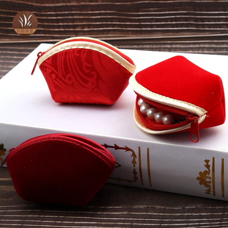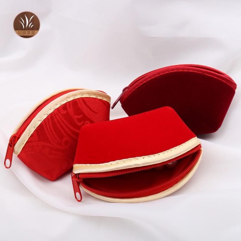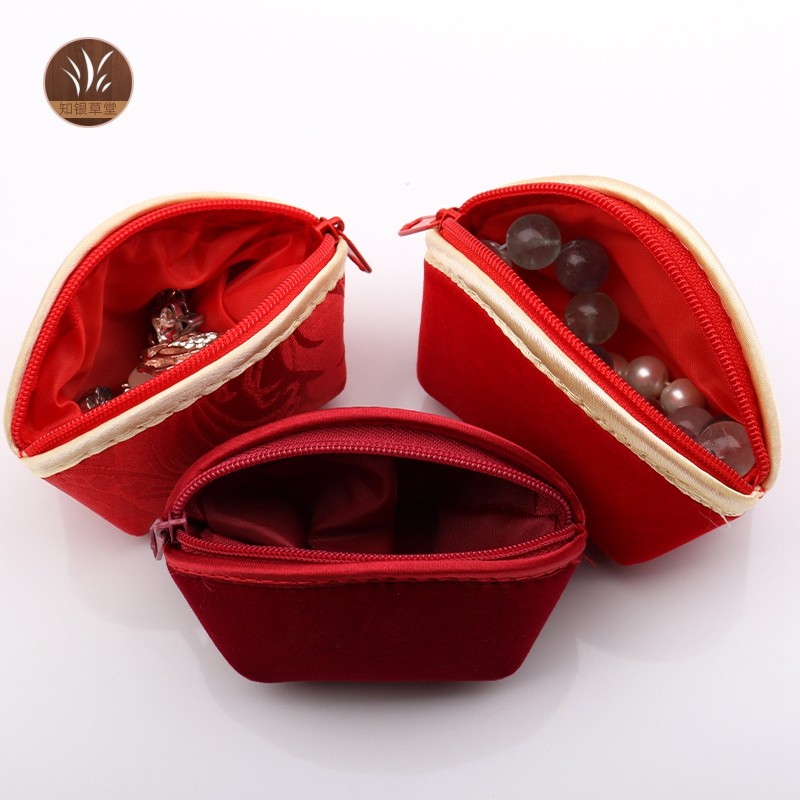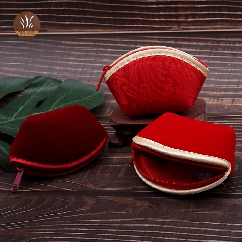 📚 首饰包装袋珠宝收纳袋饺子包拉链口元宝袋红色锦缎袋喜糖零钱袋