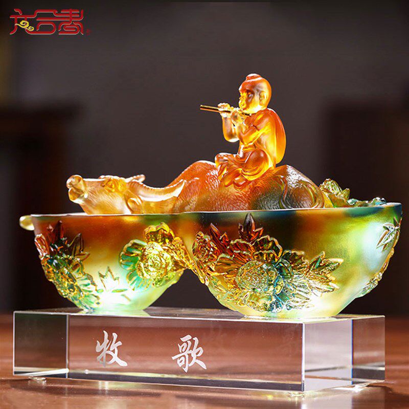 📚 琉璃摆件牧歌牛年新品新年礼物生日礼品个性定制刻字同学聚会纪念