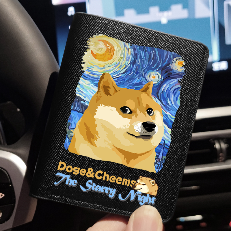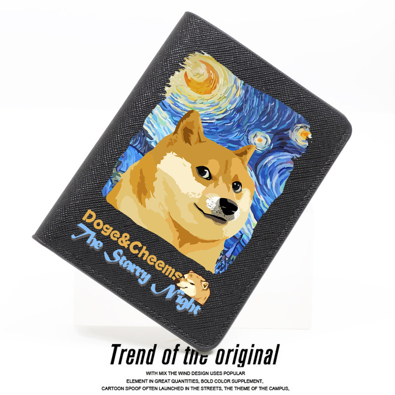 📚 梵高星空联名Doge柴犬周边Cheems汪星人个性潮牌学生钱包卡包男生