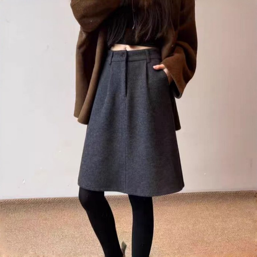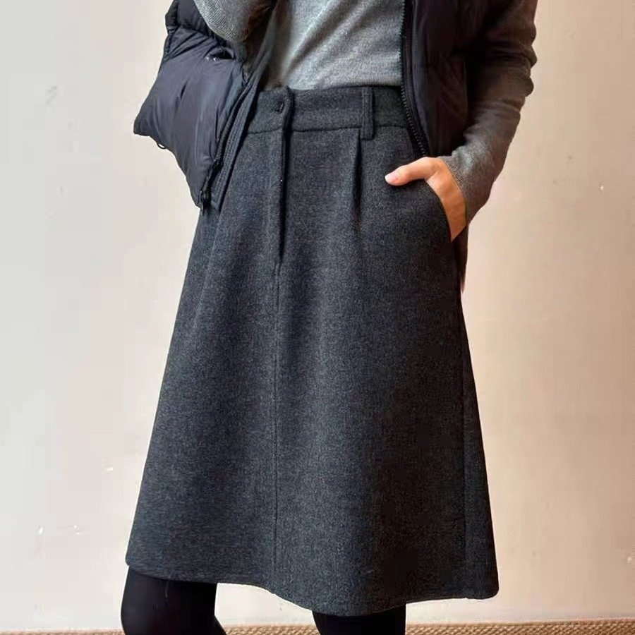 📚 大码高腰显瘦花苞中裙女秋冬毛呢半身裙梨形小个子藏肉伯克利半裙