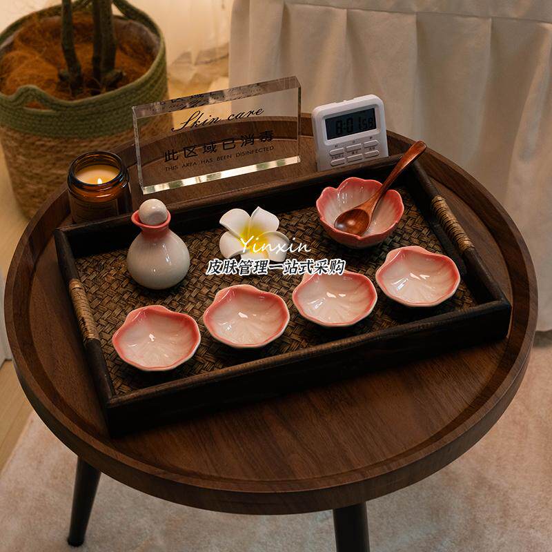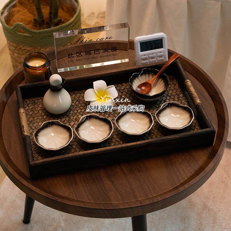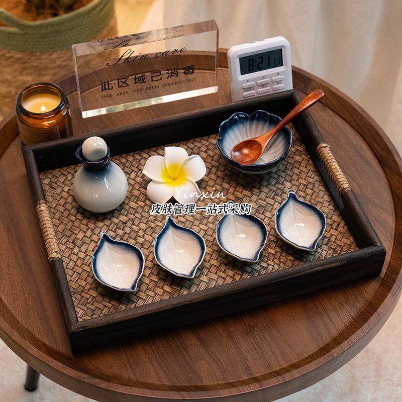 📚 泰式spa工具美容院精油碗产品调配陶瓷调膜碗精油碟碗套装盘托盘