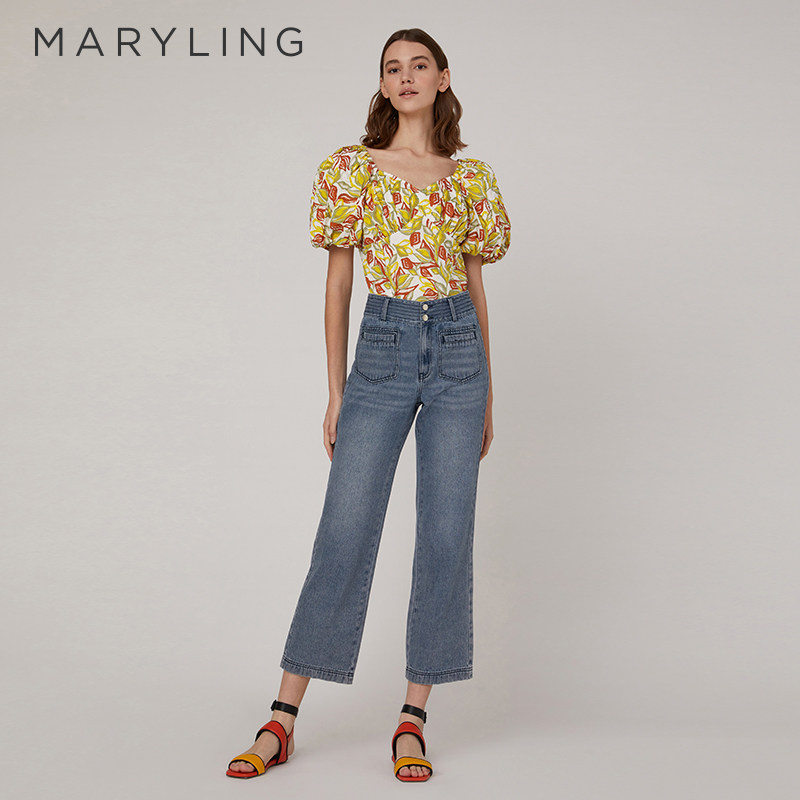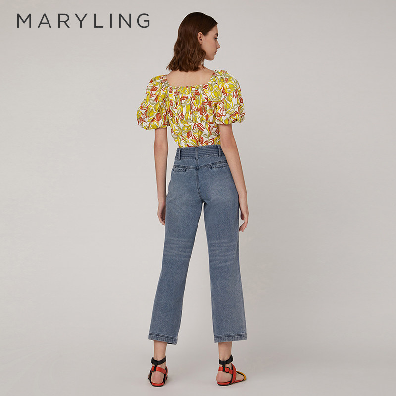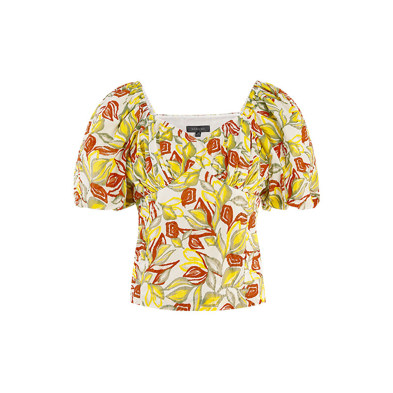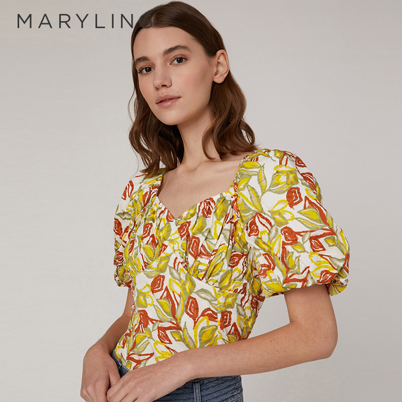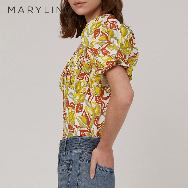 📚 MARYLING玛俪琳2023夏季枫叶黄胸前褶皱泡泡袖上衣A1CCW26430