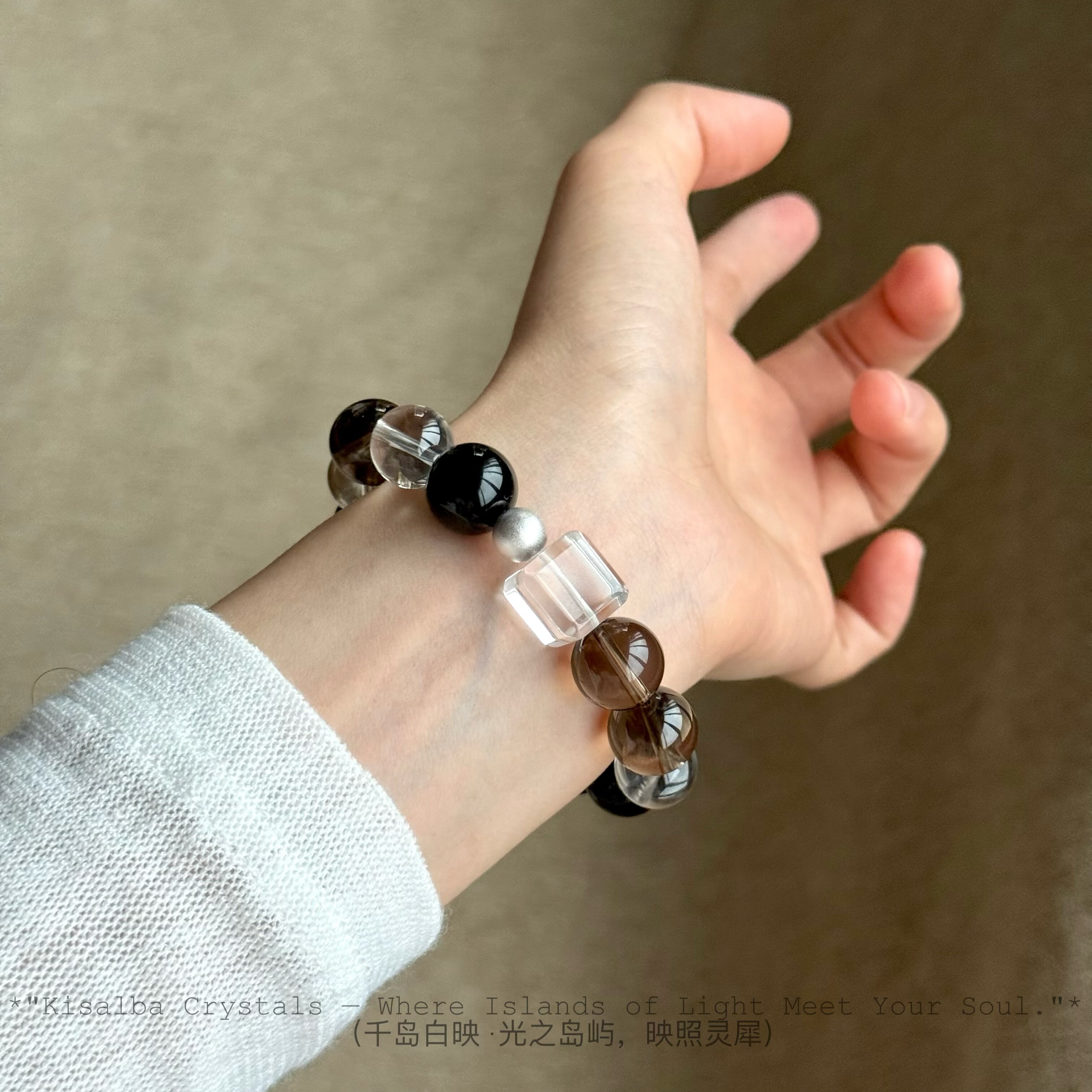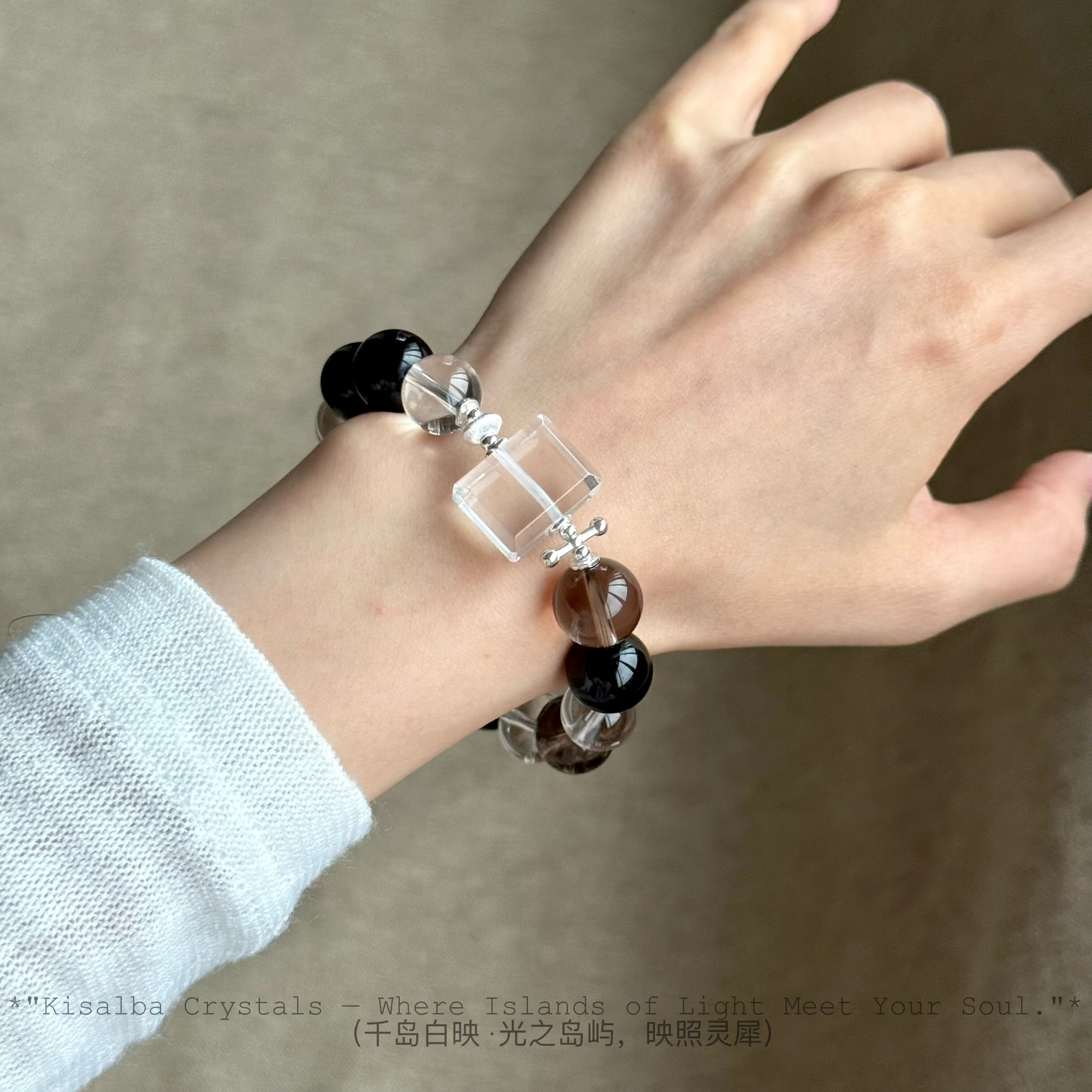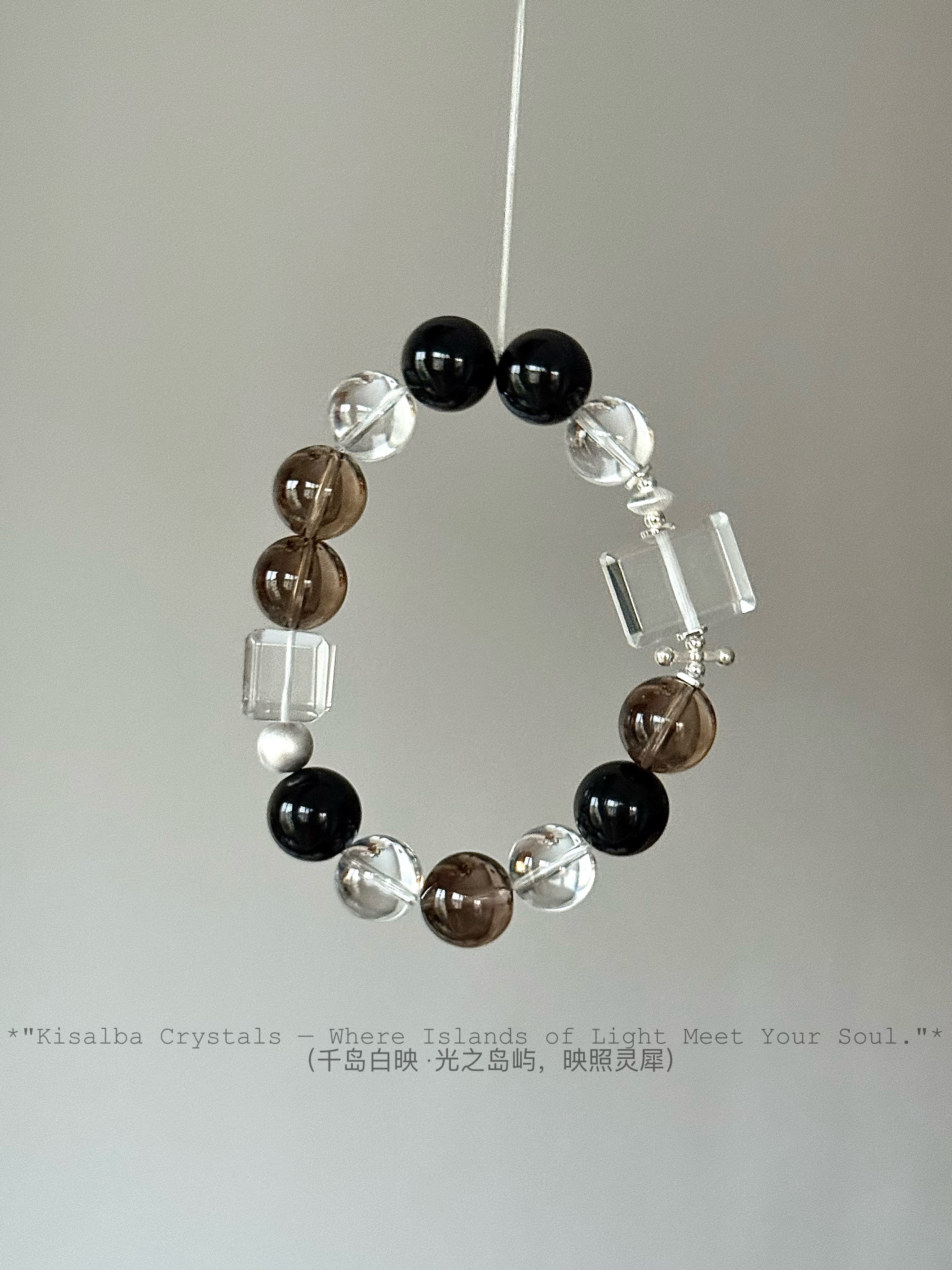 📚 Kisalba【·三生万物·】喜金水土 天然白水晶牌子茶晶黑曜石银配