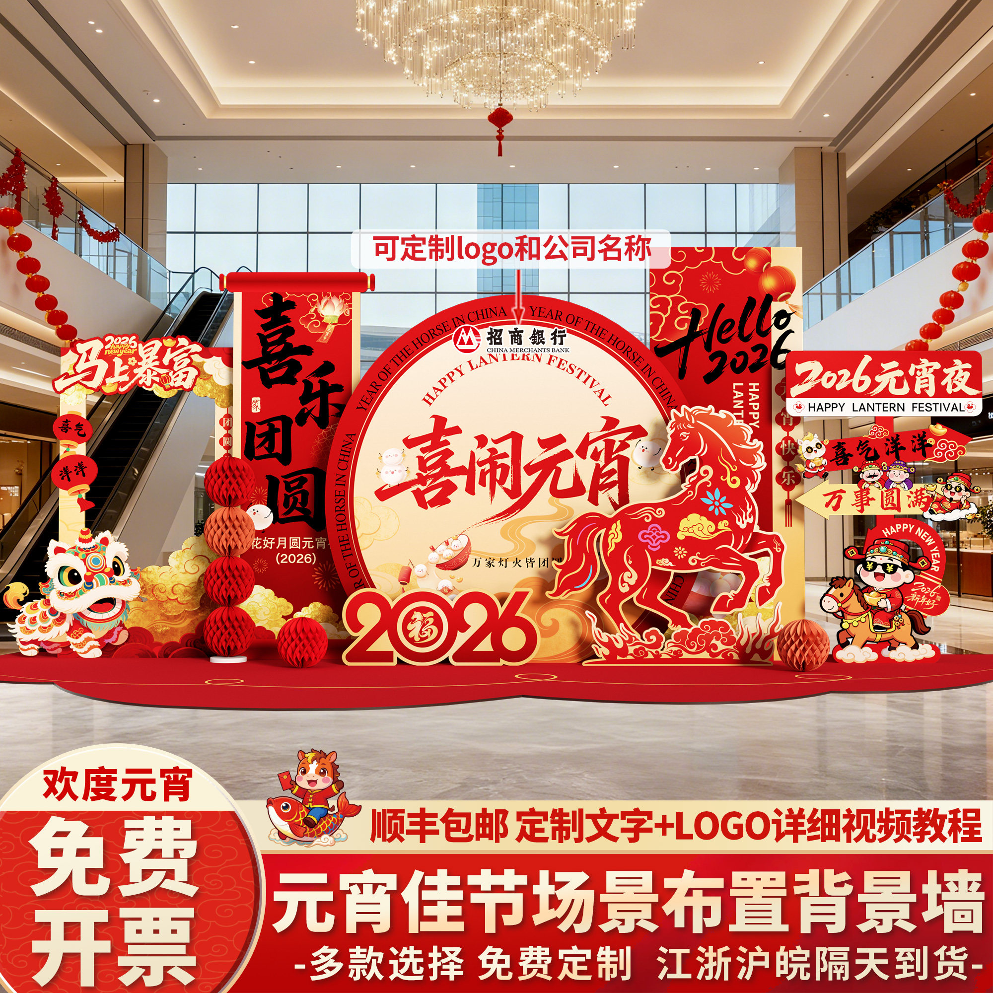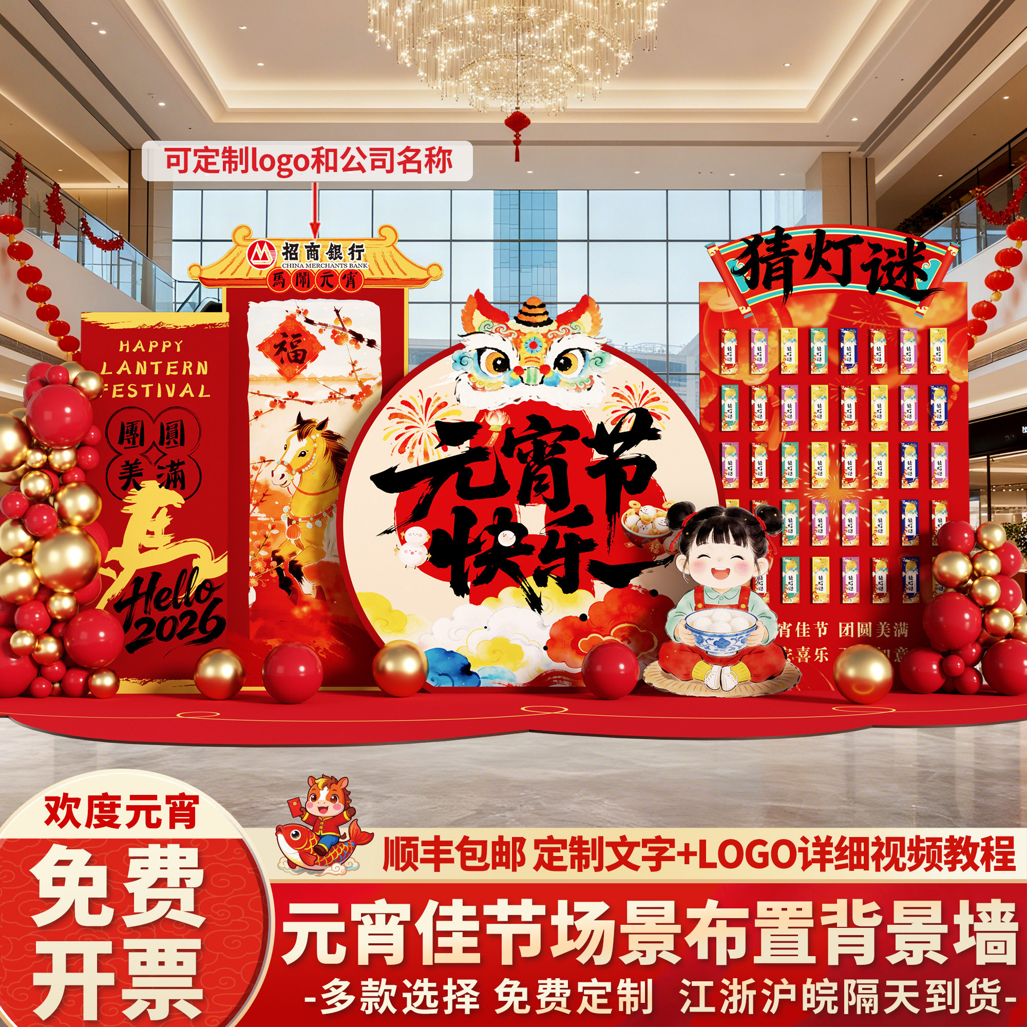📚 元宵节氛围布置商场店铺活动猜灯谜趣味场景装饰kt板定制背景墙