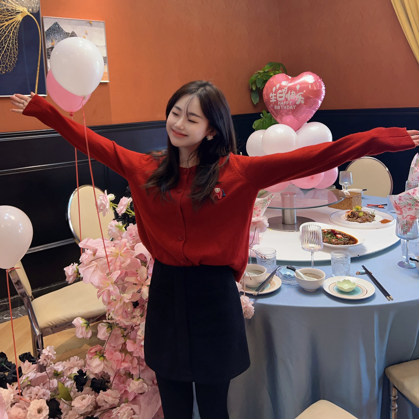 📚 小小家小个子 小码红色小马年毛衣小版型基础甜美针织开衫150xs