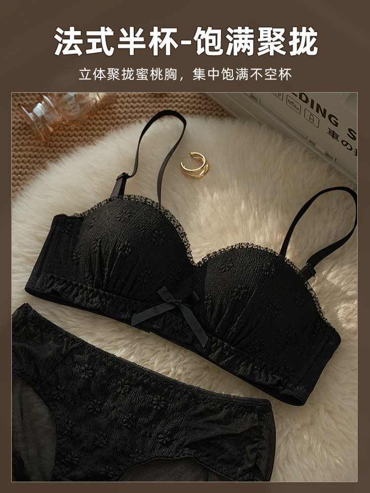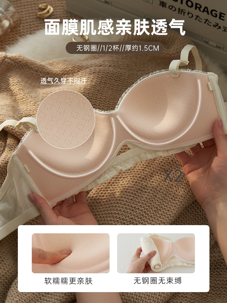 📚 无肩带内衣女防滑聚拢半罩杯小胸显大aa杯胸罩中薄无钢圈文胸套装