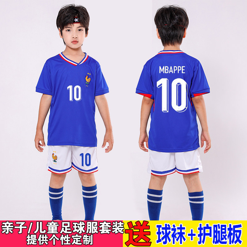 📚 法国国家队儿童足球服套装男女亲子活动定制比赛训练运动表演球衣