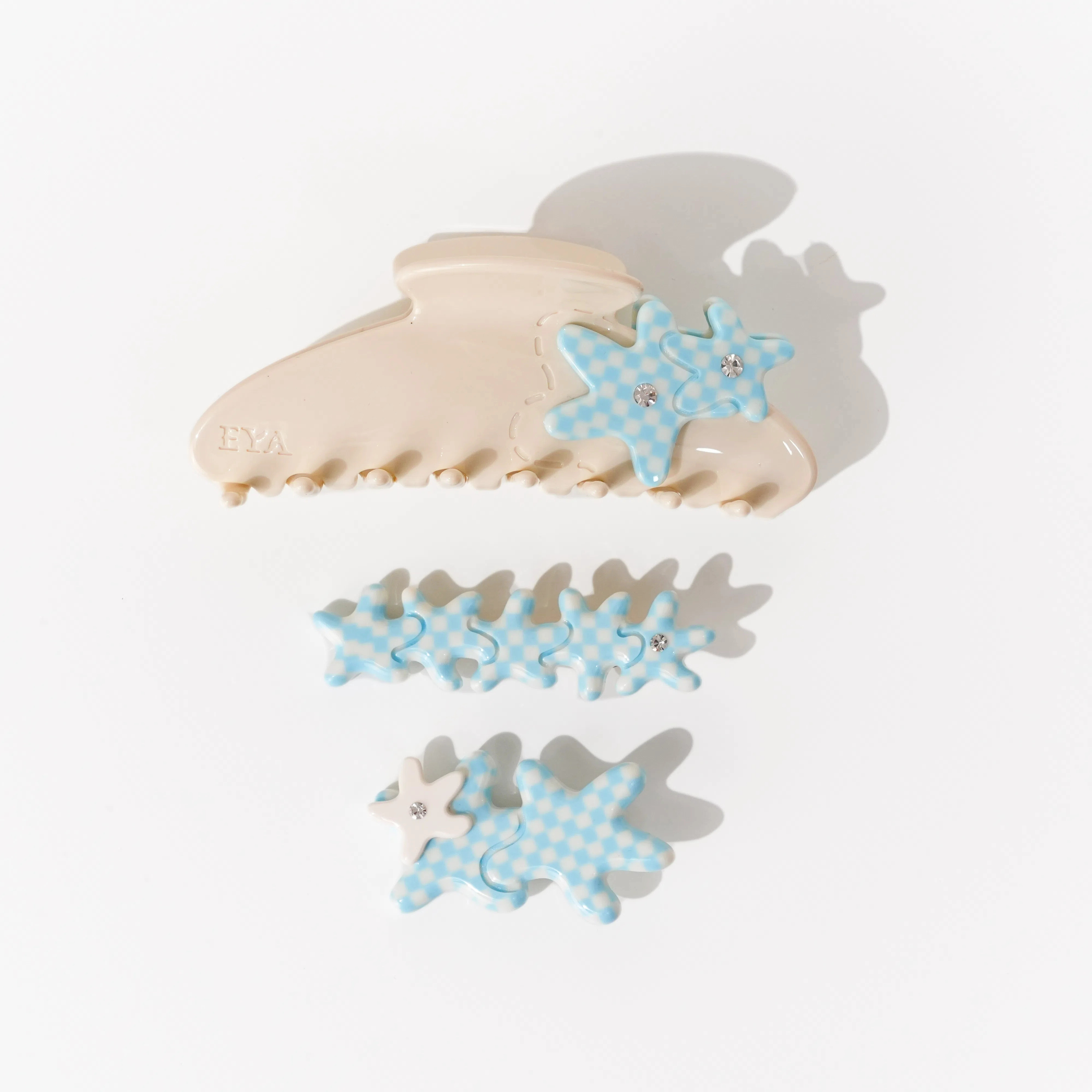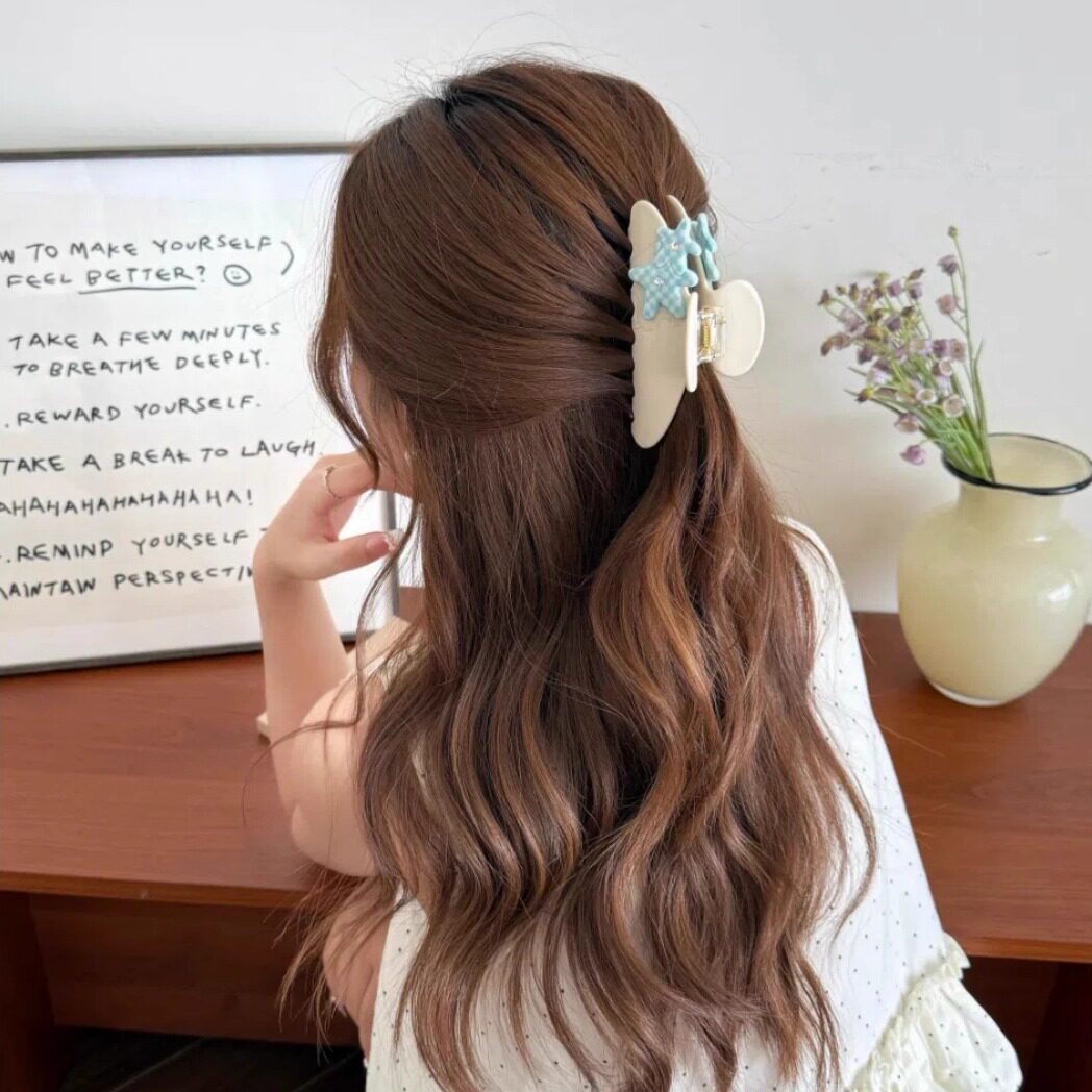 📚 EYA(饰品)【张淼怡同款】小星芒镶钻海星醋酸可爱发夹边夹抓夹