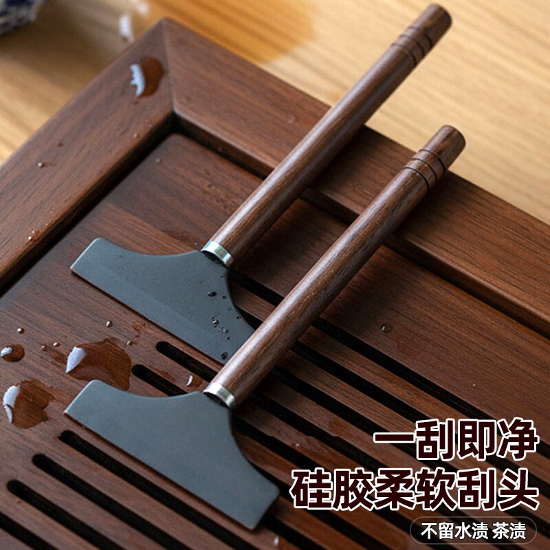 📚 硅胶茶刮胡桃木手柄茶台工具饮水刮水器茶道配件不伤茶盘茶刮器